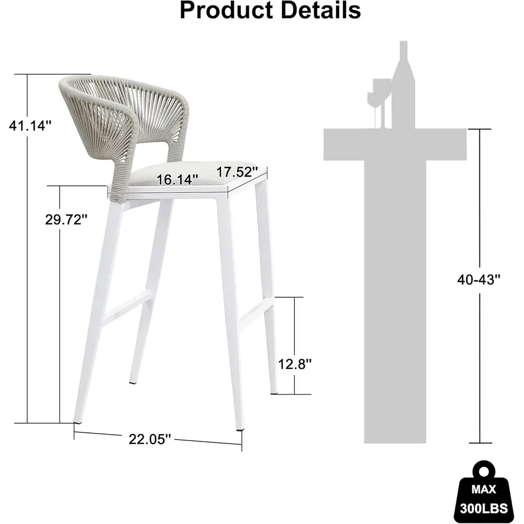 The one-piece seat pan and backrest provide the ultimate in comfort. The patio stool is made of high quality all-weather polyethylene rattan, durable and UV resistant. The grey finished aluminum frame is sturdy and rust-resistant for long-term outdoor use. The all-weather woven resin wicker backrests will relieve back fatigue, and the footrest gives you extra space to rest your legs. The chair has a comfortable seat, and you can spend time enjoying this modern and classic bar stool anytime. What's Included? Features: