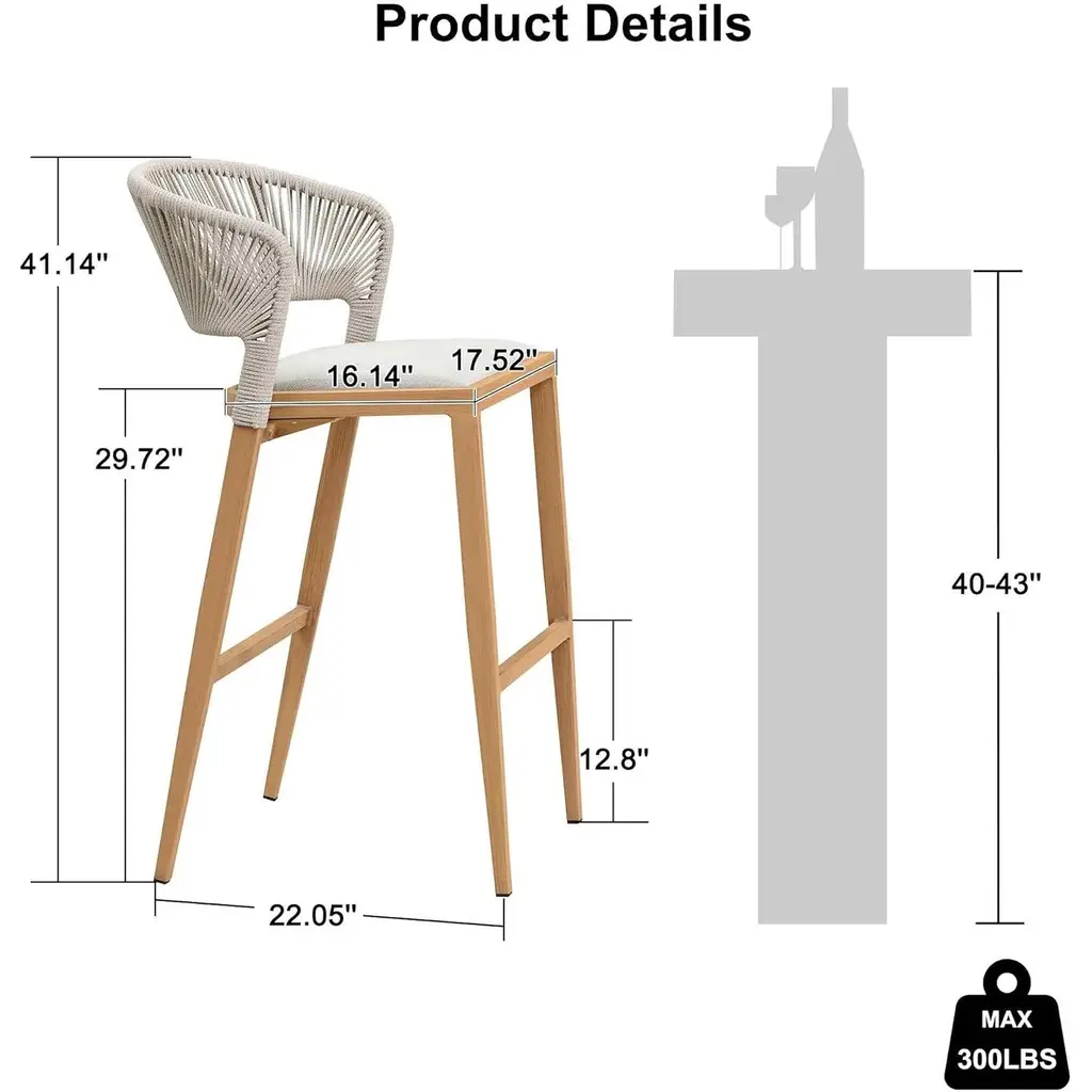 The one-piece seat pan and backrest provide the ultimate in comfort. The patio stool is made of high quality all-weather polyethylene rattan, durable and UV resistant. The grey finished aluminum frame is sturdy and rust-resistant for long-term outdoor use. The all-weather woven resin wicker backrests will relieve back fatigue, and the footrest gives you extra space to rest your legs. The chair has a comfortable seat, and you can spend time enjoying this modern and classic bar stool anytime. What's Included? Features: