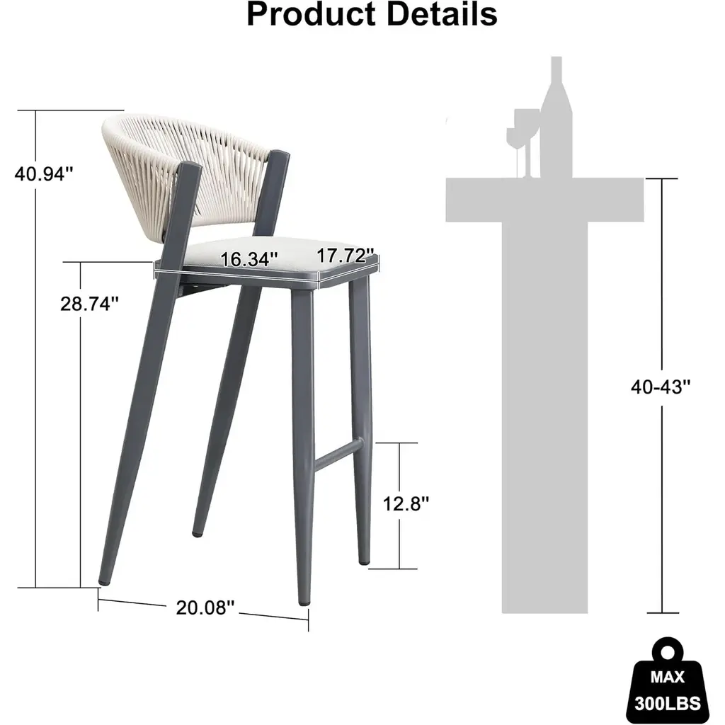 The one-piece seat pan and backrest provide the ultimate in comfort. The patio stool is made of high quality all-weather polyethylene rattan, durable and UV resistant. The grey finished aluminum frame is sturdy and rust-resistant for long-term outdoor use. The all-weather woven resin wicker backrests will relieve back fatigue, and the footrest gives you extra space to rest your legs. The chair has a comfortable seat, and you can spend time enjoying this modern and classic bar stool anytime. What's Included? Features: