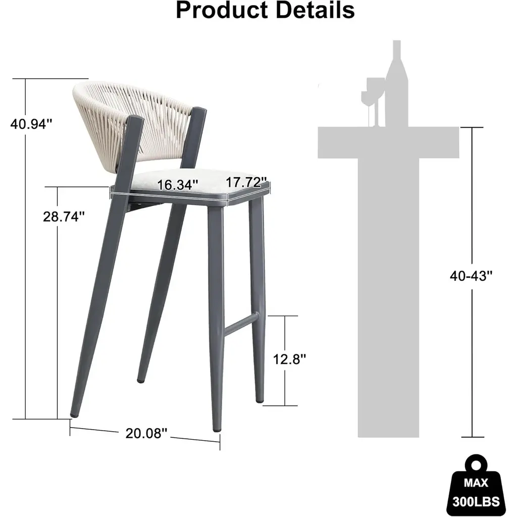 The one-piece seat pan and backrest provide the ultimate in comfort. The patio stool is made of high quality all-weather polyethylene rattan, durable and UV resistant. The grey finished aluminum frame is sturdy and rust-resistant for long-term outdoor use. The all-weather woven resin wicker backrests will relieve back fatigue, and the footrest gives you extra space to rest your legs. The chair has a comfortable seat, and you can spend time enjoying this modern and classic bar stool anytime. What's Included? Features: