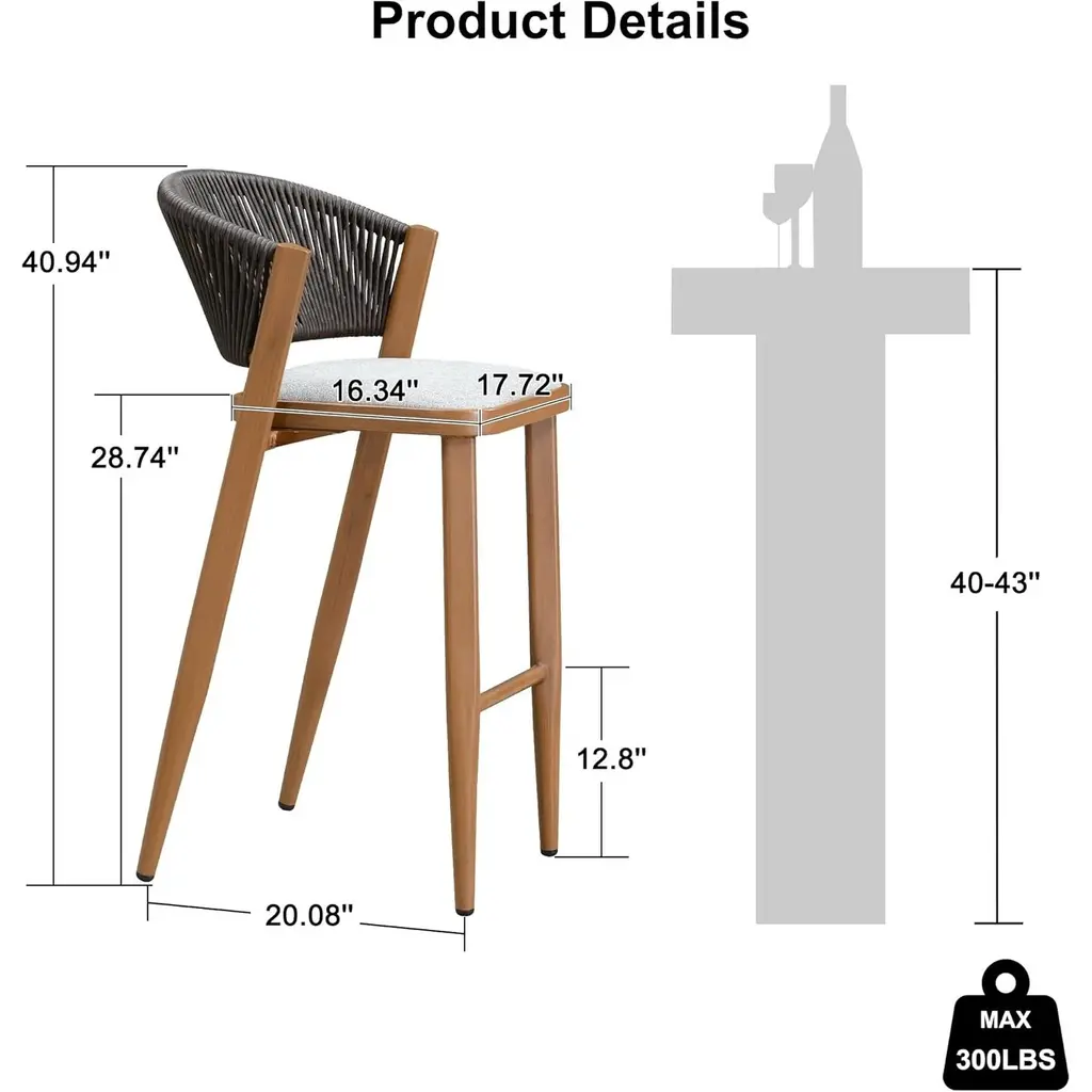 The one-piece seat pan and backrest provide the ultimate in comfort. The patio stool is made of high quality all-weather polyethylene rattan, durable and UV resistant. The grey finished aluminum frame is sturdy and rust-resistant for long-term outdoor use. The all-weather woven resin wicker backrests will relieve back fatigue, and the footrest gives you extra space to rest your legs. The chair has a comfortable seat, and you can spend time enjoying this modern and classic bar stool anytime. What's Included? Features: