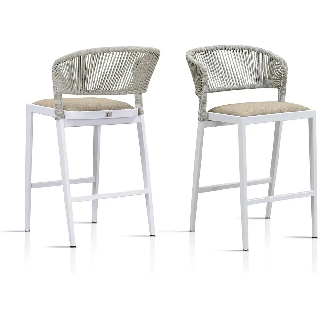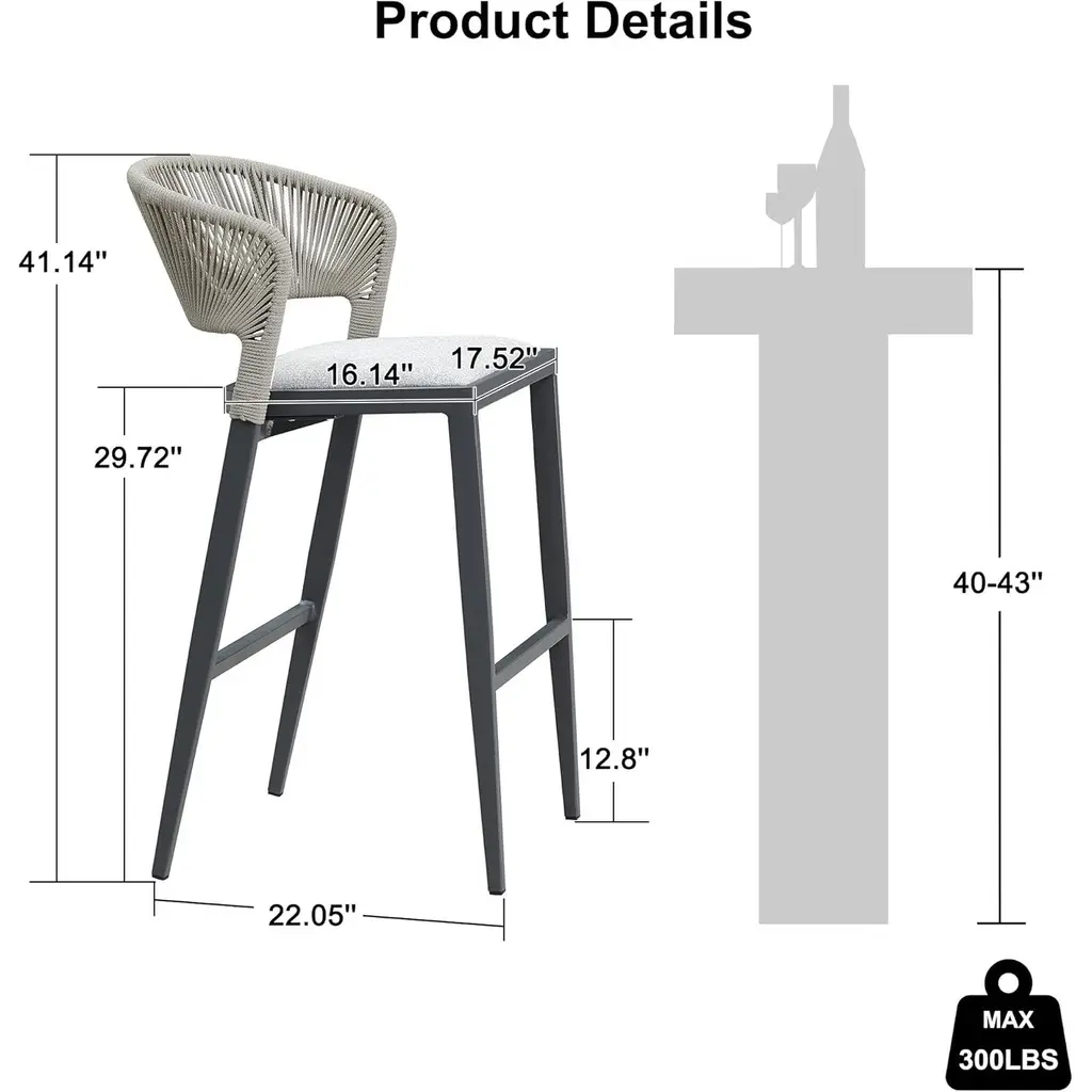 The one-piece seat pan and backrest provide the ultimate in comfort. The patio stool is made of high quality all-weather polyethylene rattan, durable and UV resistant. The grey finished aluminum frame is sturdy and rust-resistant for long-term outdoor use. The all-weather woven resin wicker backrests will relieve back fatigue, and the footrest gives you extra space to rest your legs. The chair has a comfortable seat, and you can spend time enjoying this modern and classic bar stool anytime. What's Included? Features: