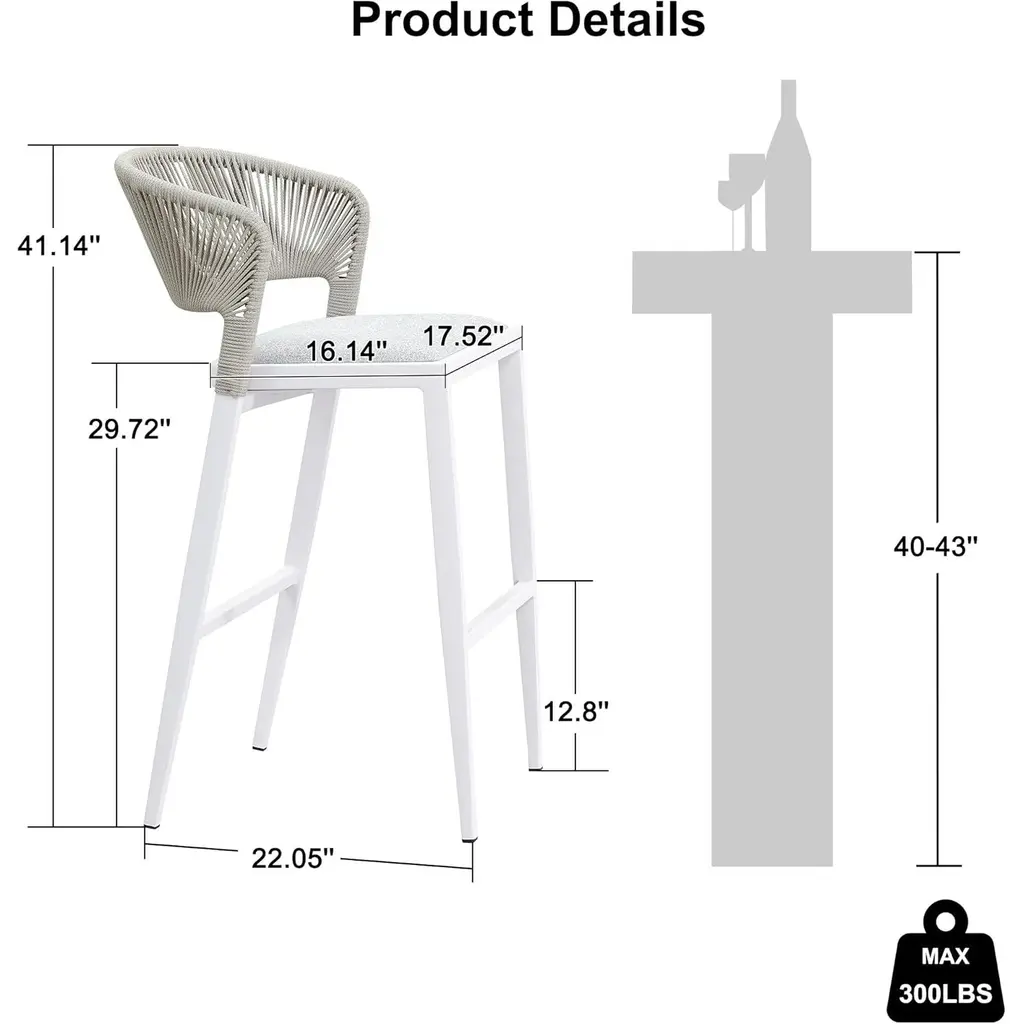 The one-piece seat pan and backrest provide the ultimate in comfort. The patio stool is made of high quality all-weather polyethylene rattan, durable and UV resistant. The grey finished aluminum frame is sturdy and rust-resistant for long-term outdoor use. The all-weather woven resin wicker backrests will relieve back fatigue, and the footrest gives you extra space to rest your legs. The chair has a comfortable seat, and you can spend time enjoying this modern and classic bar stool anytime. What's Included? Features: