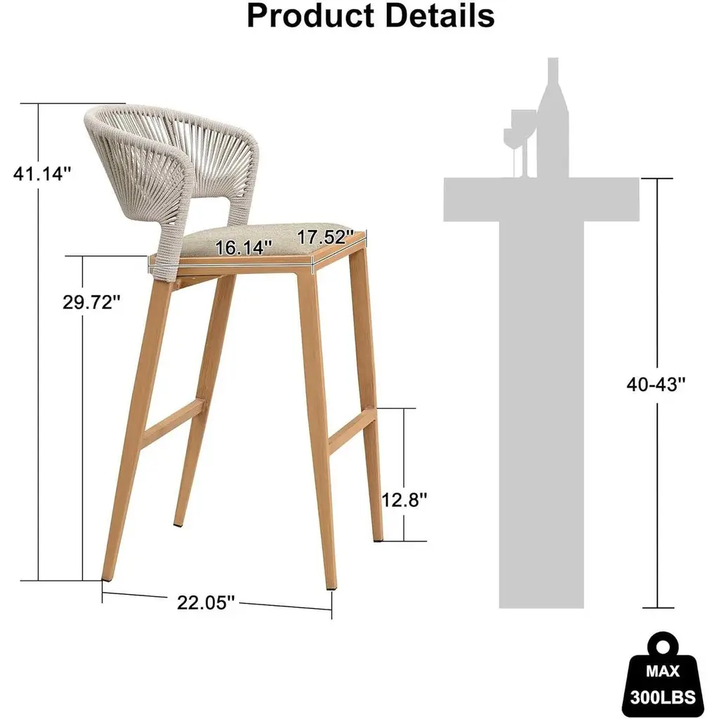 The one-piece seat pan and backrest provide the ultimate in comfort. The patio stool is made of high quality all-weather polyethylene rattan, durable and UV resistant. The grey finished aluminum frame is sturdy and rust-resistant for long-term outdoor use. The all-weather woven resin wicker backrests will relieve back fatigue, and the footrest gives you extra space to rest your legs. The chair has a comfortable seat, and you can spend time enjoying this modern and classic bar stool anytime. What's Included? Features: