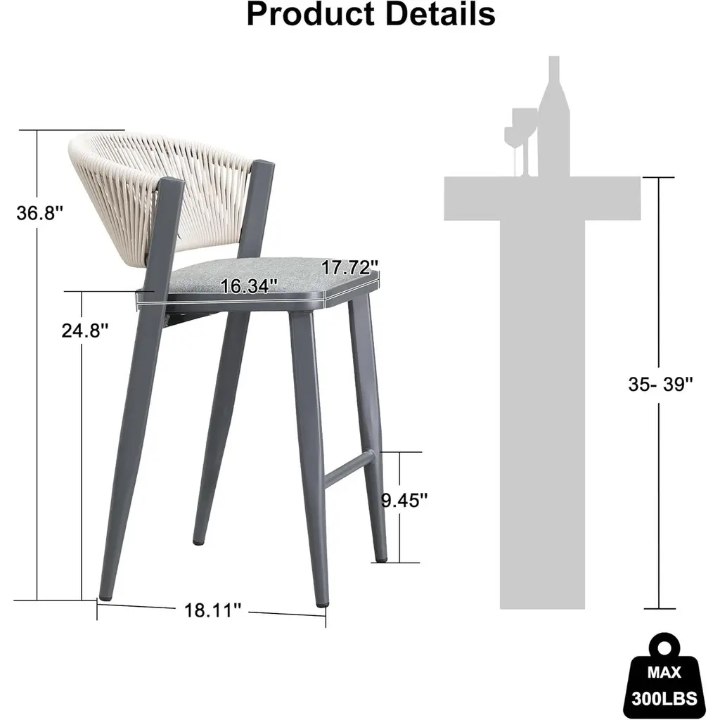 The one-piece seat pan and backrest provide the ultimate in comfort. The patio stool is made of high quality all-weather polyethylene rattan, durable and UV resistant. The grey finished aluminum frame is sturdy and rust-resistant for long-term outdoor use. The all-weather woven resin wicker backrests will relieve back fatigue, and the footrest gives you extra space to rest your legs. The chair has a comfortable seat, and you can spend time enjoying this modern and classic bar stool anytime. What's Included? Features: