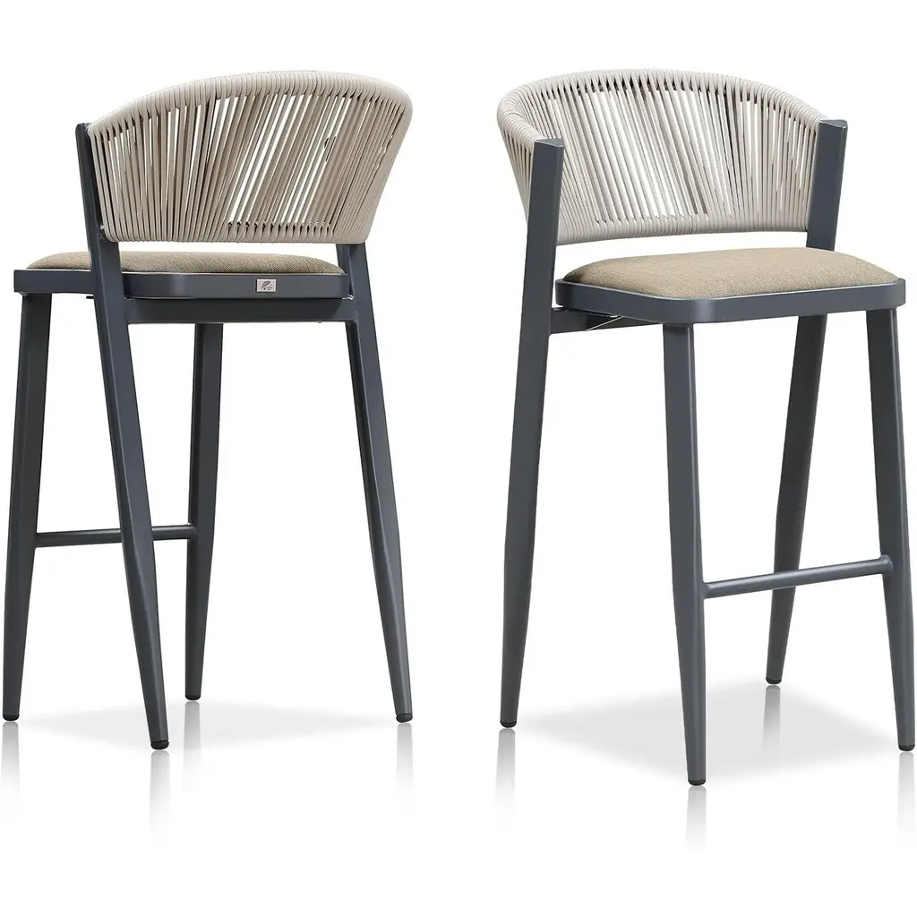 Purple Leaf Bar Stool Set Of 2 Outdoor Rattan Bar Chair With Back Metal Bar Height Stool Wicker Barstool Dark Grey - N/a - Counter Height-Drey