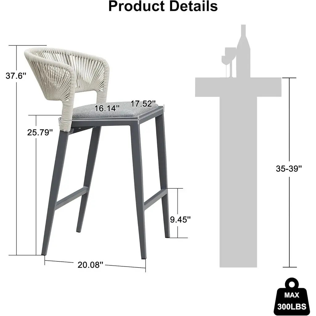 The one-piece seat pan and backrest provide the ultimate in comfort. The patio stool is made of high quality all-weather polyethylene rattan, durable and UV resistant. The grey finished aluminum frame is sturdy and rust-resistant for long-term outdoor use. The all-weather woven resin wicker backrests will relieve back fatigue, and the footrest gives you extra space to rest your legs. The chair has a comfortable seat, and you can spend time enjoying this modern and classic bar stool anytime. What's Included? Features: