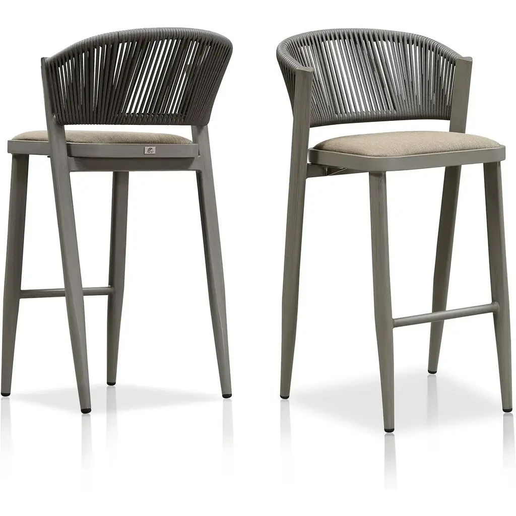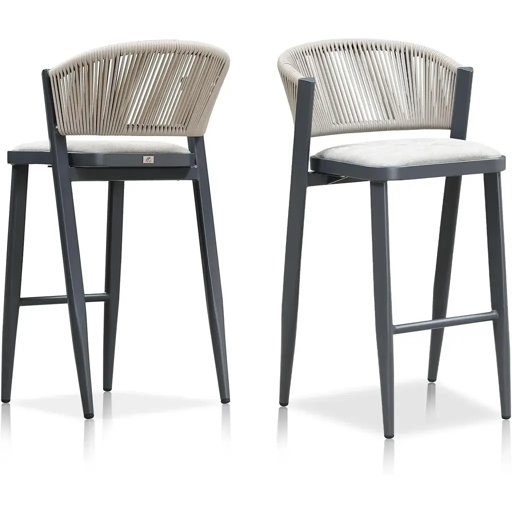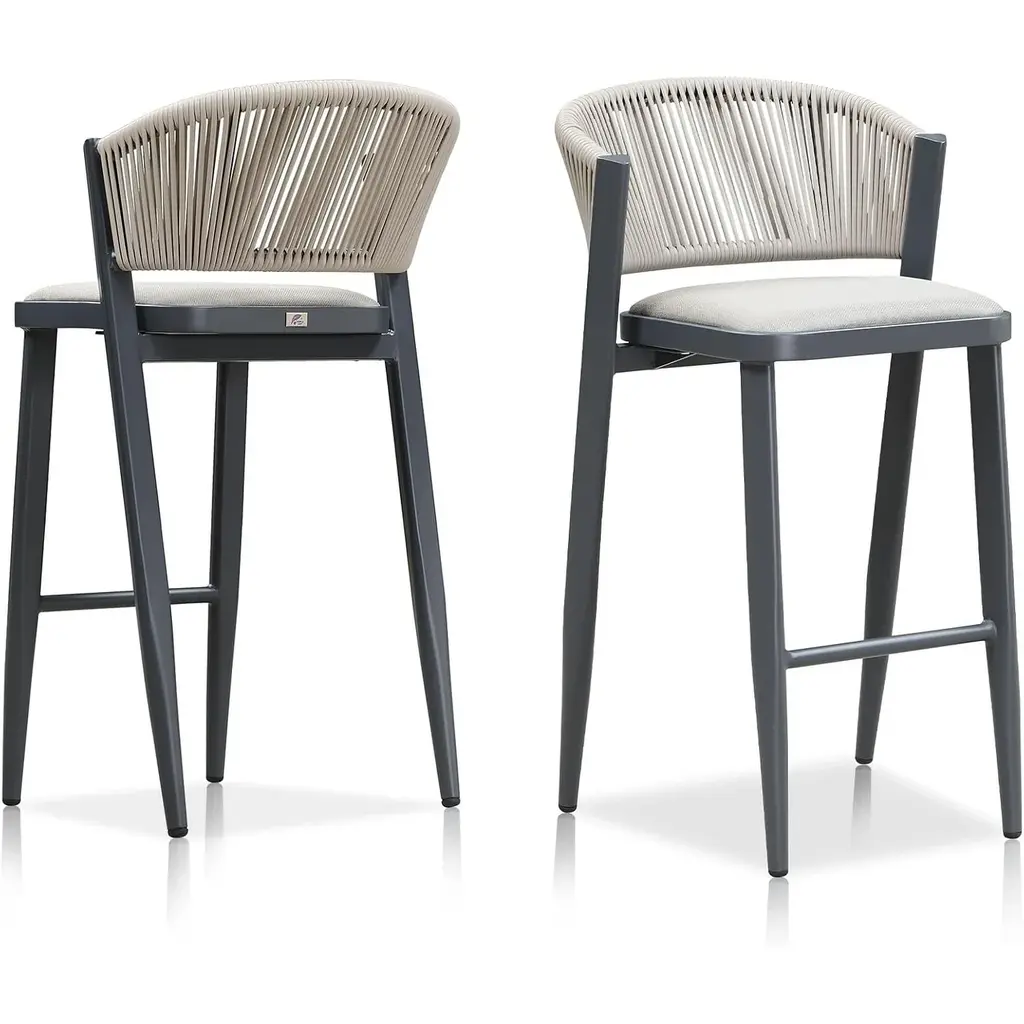 The one-piece seat pan and backrest provide the ultimate in comfort. The patio stool is made of high quality all-weather polyethylene rattan, durable and UV resistant. The grey finished aluminum frame is sturdy and rust-resistant for long-term outdoor use. The all-weather woven resin wicker backrests will relieve back fatigue, and the footrest gives you extra space to rest your legs. The chair has a comfortable seat, and you can spend time enjoying this modern and classic bar stool anytime. What's Included? Features: