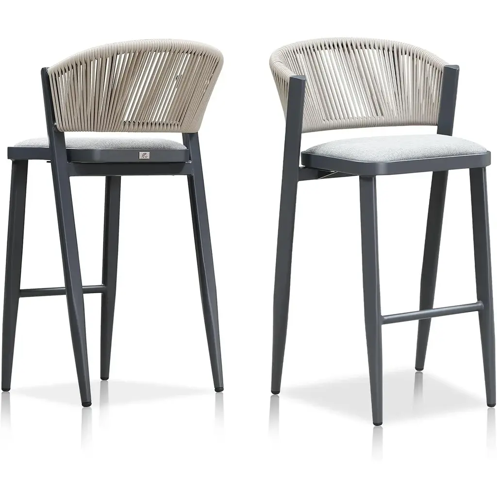Purple Leaf Bar Stool Set Of 2 Outdoor Rattan Bar Chair With Back Metal Bar Height Stool Wicker Barstool Dark Grey - N/a - Counter Height-Scallop Cushion