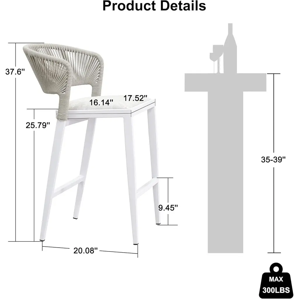 The one-piece seat pan and backrest provide the ultimate in comfort. The patio stool is made of high quality all-weather polyethylene rattan, durable and UV resistant. The grey finished aluminum frame is sturdy and rust-resistant for long-term outdoor use. The all-weather woven resin wicker backrests will relieve back fatigue, and the footrest gives you extra space to rest your legs. The chair has a comfortable seat, and you can spend time enjoying this modern and classic bar stool anytime. What's Included? Features: