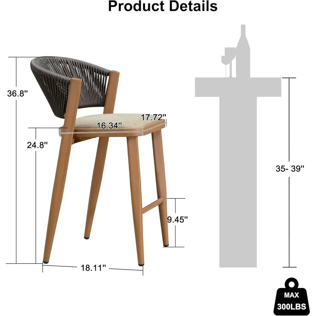 Purple Leaf Bar Stool Set Of 2 Outdoor Rattan Bar Chair With Back Metal Bar Height Stool Wicker Barstool Dark Grey - N/a - Counter Height-Umber Cushion