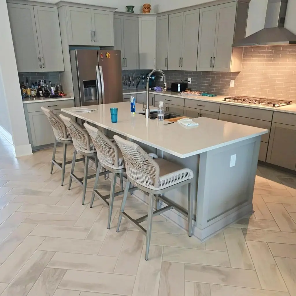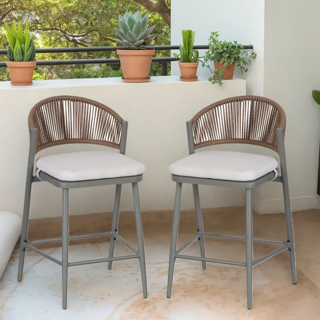 Purple Leaf Bar Stools Set Of 4 Outdoor Bar Height Metal Stools Modern Wicker Rattan Barstools With Back Aluminum - Light Grey-Twill-39.56"h