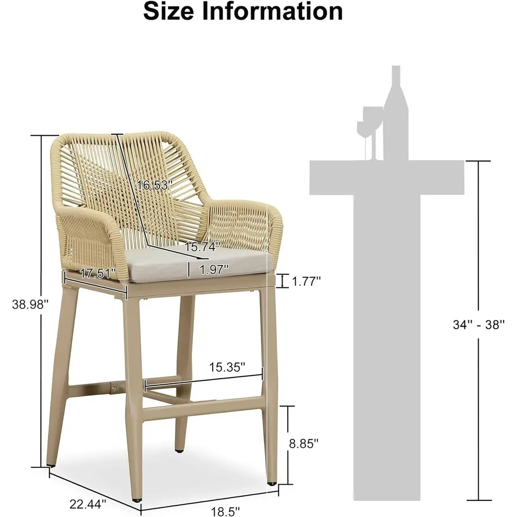 Purple Leaf Outdoor Bar Stools Chair Set Of 2, All Weather Rattan And Aluminum Patio Bar Stool With Cushion - Cream-Counter Stool