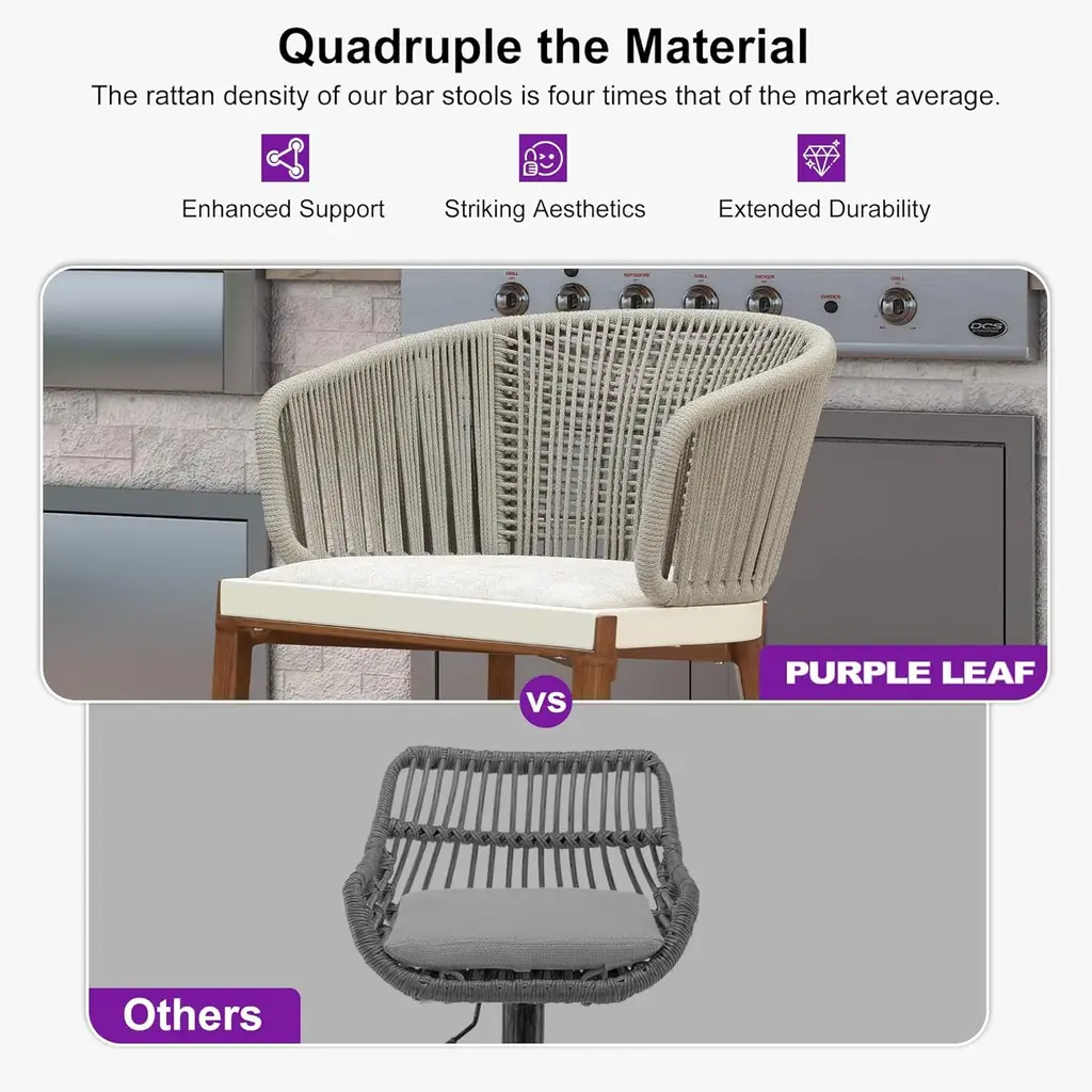 PURPLE LEAF outdoor barstools is made of modern rattan design, simple and elegant, perfect for modern furniture decoration style, Aluminum frame is durable and not easy to rust, and the backrest is designed with armchair, comfortable to sit, allowing you to enjoy the outdoor leisure time. What's Included?Features: