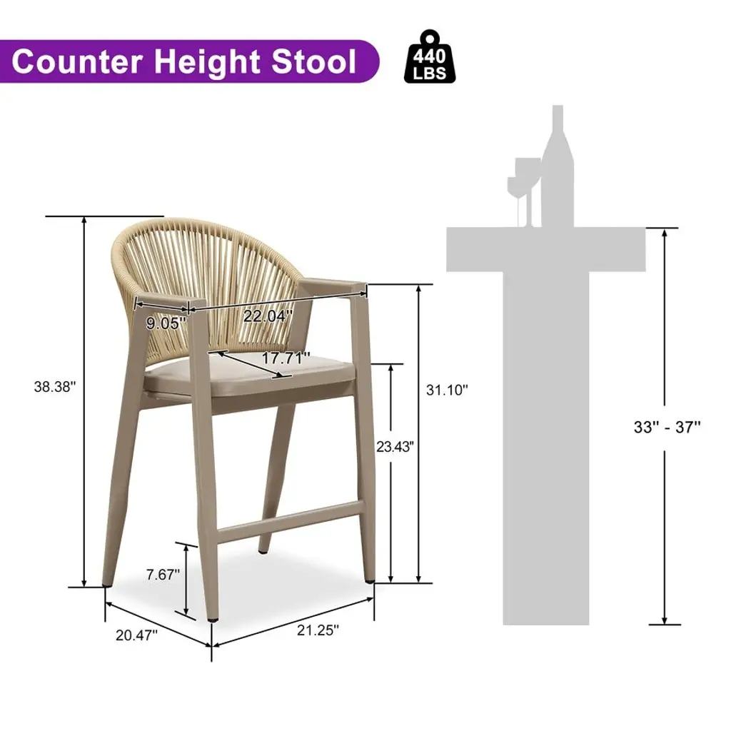 PURPLE LEAF outdoor barstools is made of modern rattan design, simple and elegant, perfect for modern furniture decoration style, Aluminum frame is durable and not easy to rust, and the backrest is designed with armchair, comfortable to sit, allowing you to enjoy the outdoor leisure time. Feature:
