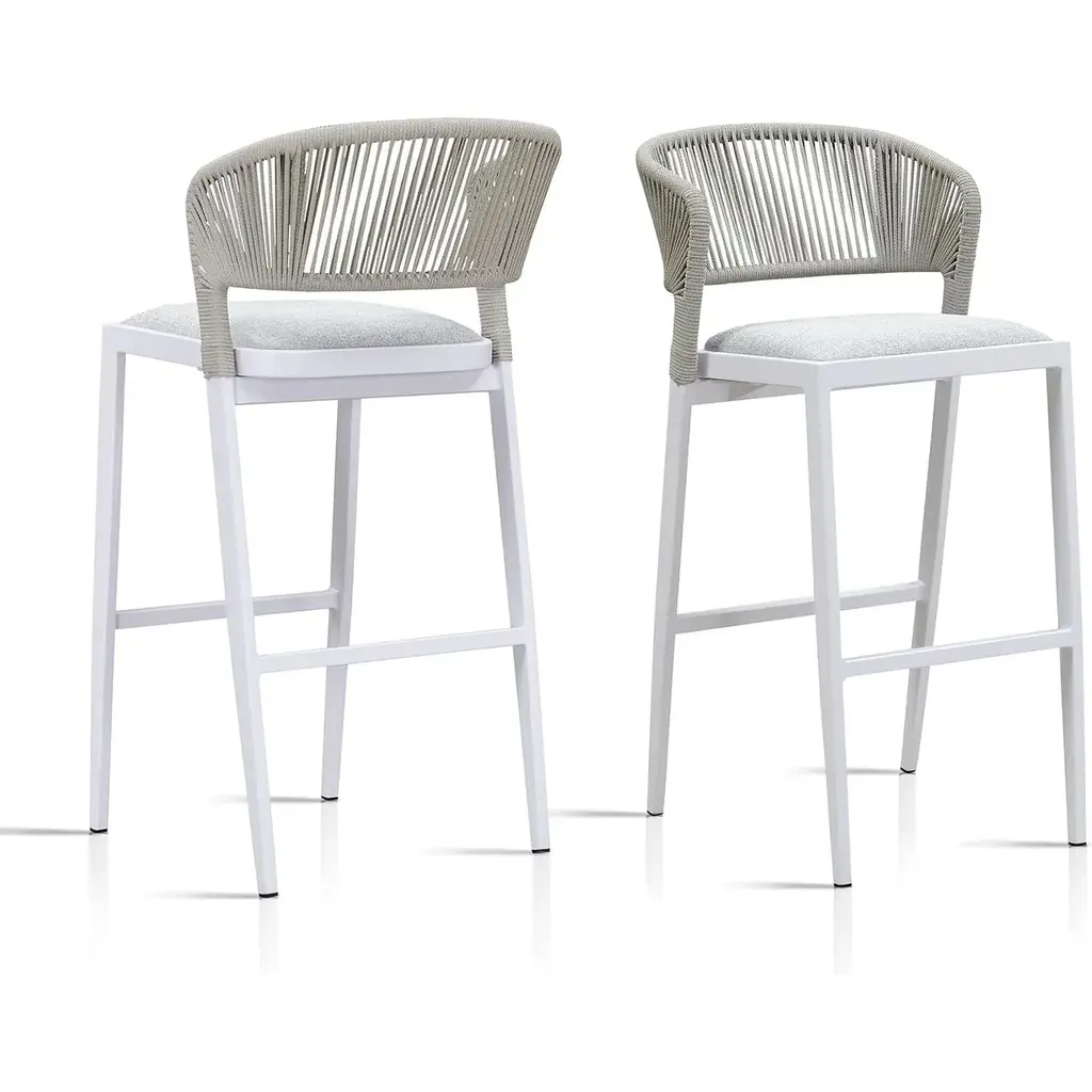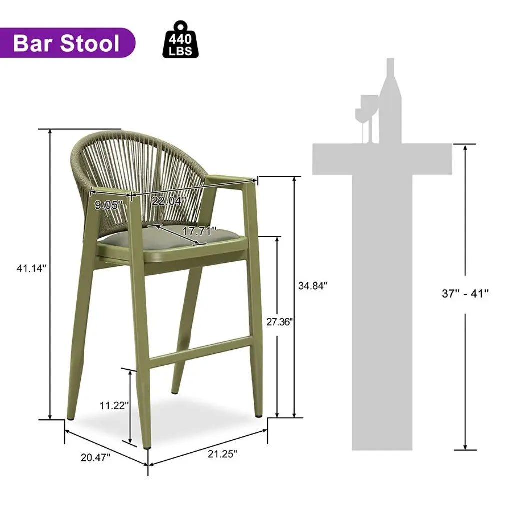 PURPLE LEAF outdoor barstools is made of modern rattan design, simple and elegant, perfect for modern furniture decoration style, Aluminum frame is durable and not easy to rust, and the backrest is designed with armchair, comfortable to sit, allowing you to enjoy the outdoor leisure time. Feature: