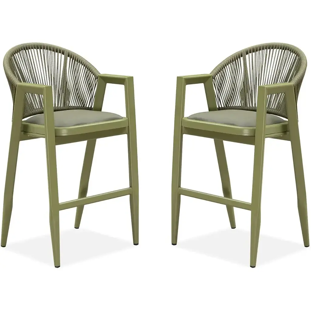 PURPLE LEAF outdoor barstools is made of modern rattan design, simple and elegant, perfect for modern furniture decoration style, Aluminum frame is durable and not easy to rust, and the backrest is designed with armchair, comfortable to sit, allowing you to enjoy the outdoor leisure time. Feature: