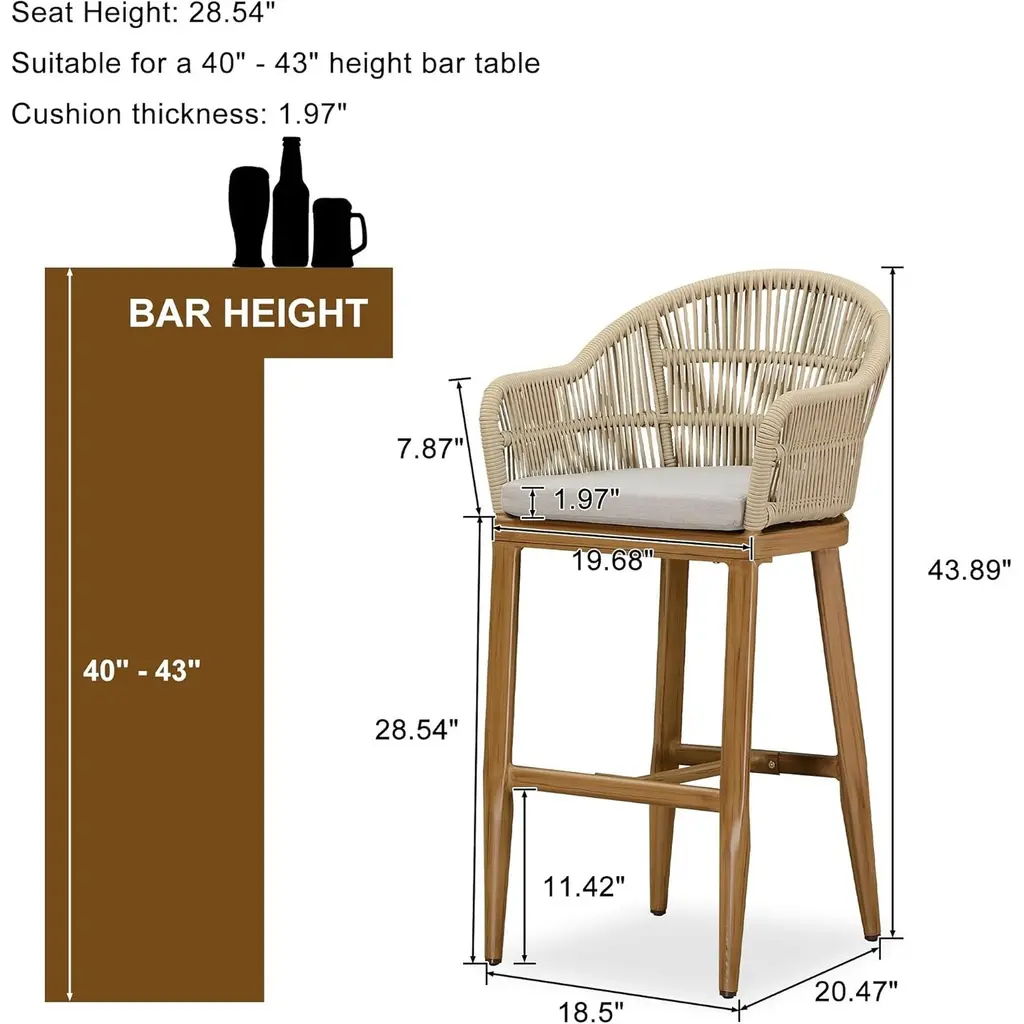 The bar stools is made of modern cross-weaving ropes design, simple and elegant, perfect for modern furniture decoration style, Aluminum frame is durable and not easy to rust, and the backrest is designed with low armchair, comfortable to sit, In addition, the island stool comes with a footrest to relieve pressure on the knee joints while sitting.allowing you to enjoy the leisure time. Features: