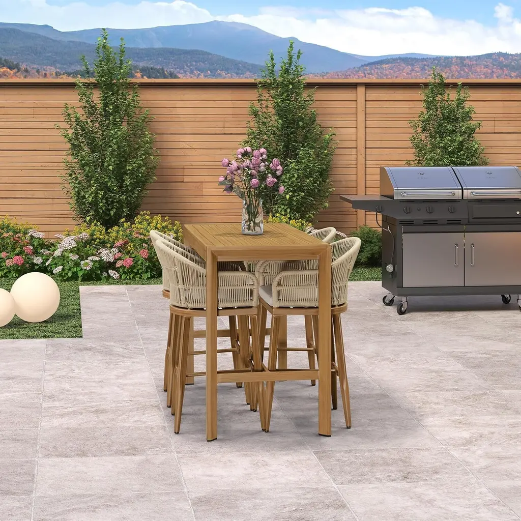 Purple Leaf Outdoor Counter Height Bar Stools Set Of 4 Patio Aluminum Barstools With Back And Cushions - Brown-Bar Height