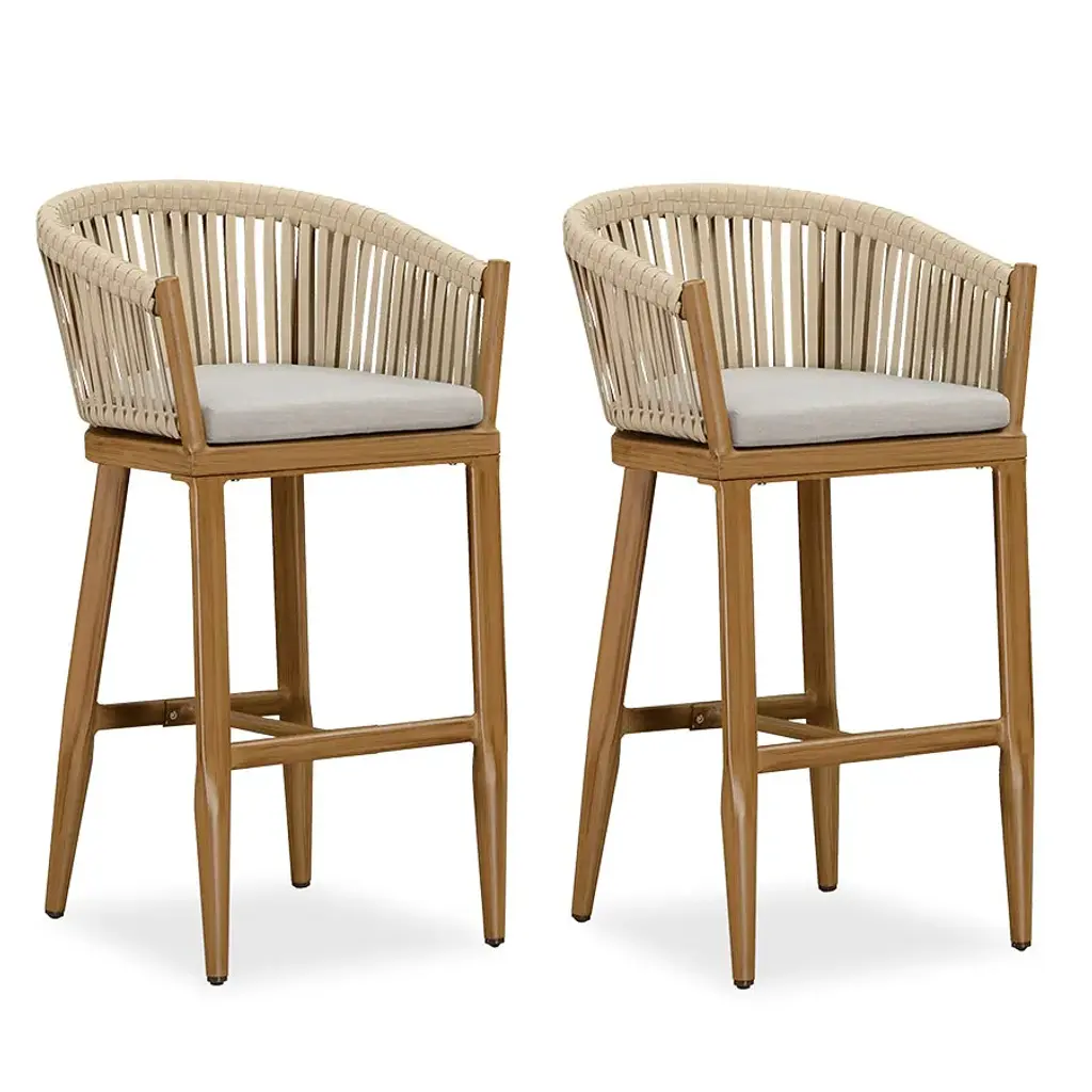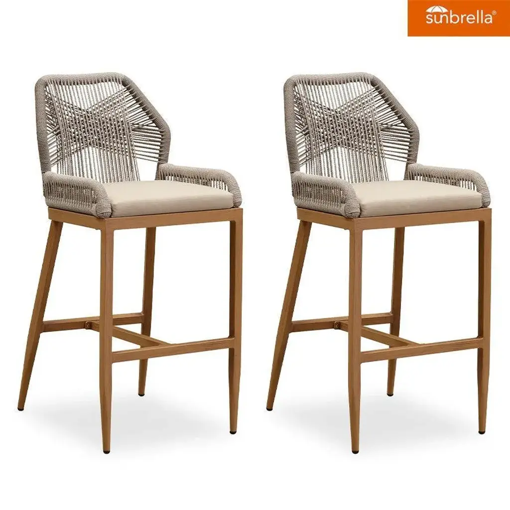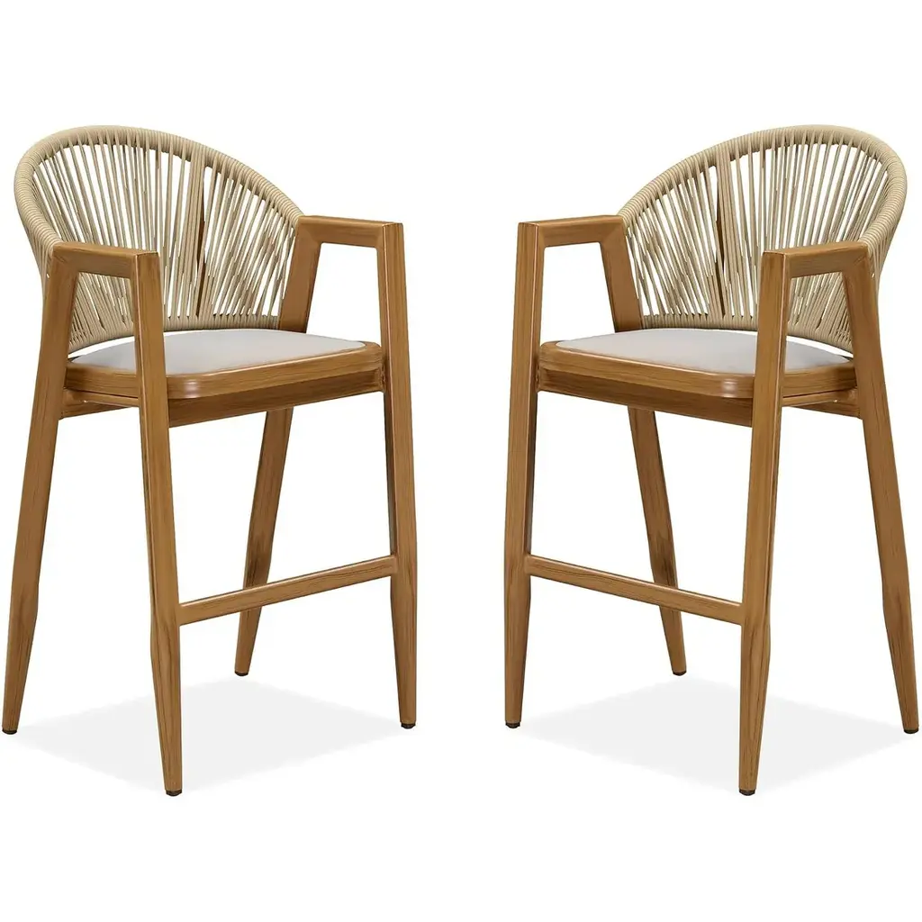 The bar stools is made of modern cross-weaving ropes design, simple and elegant, perfect for modern furniture decoration style, Aluminum frame is durable and not easy to rust, and the backrest is designed with low armchair, comfortable to sit, In addition, the island stool comes with a footrest to relieve pressure on the knee joints while sitting.allowing you to enjoy the leisure time. Features: