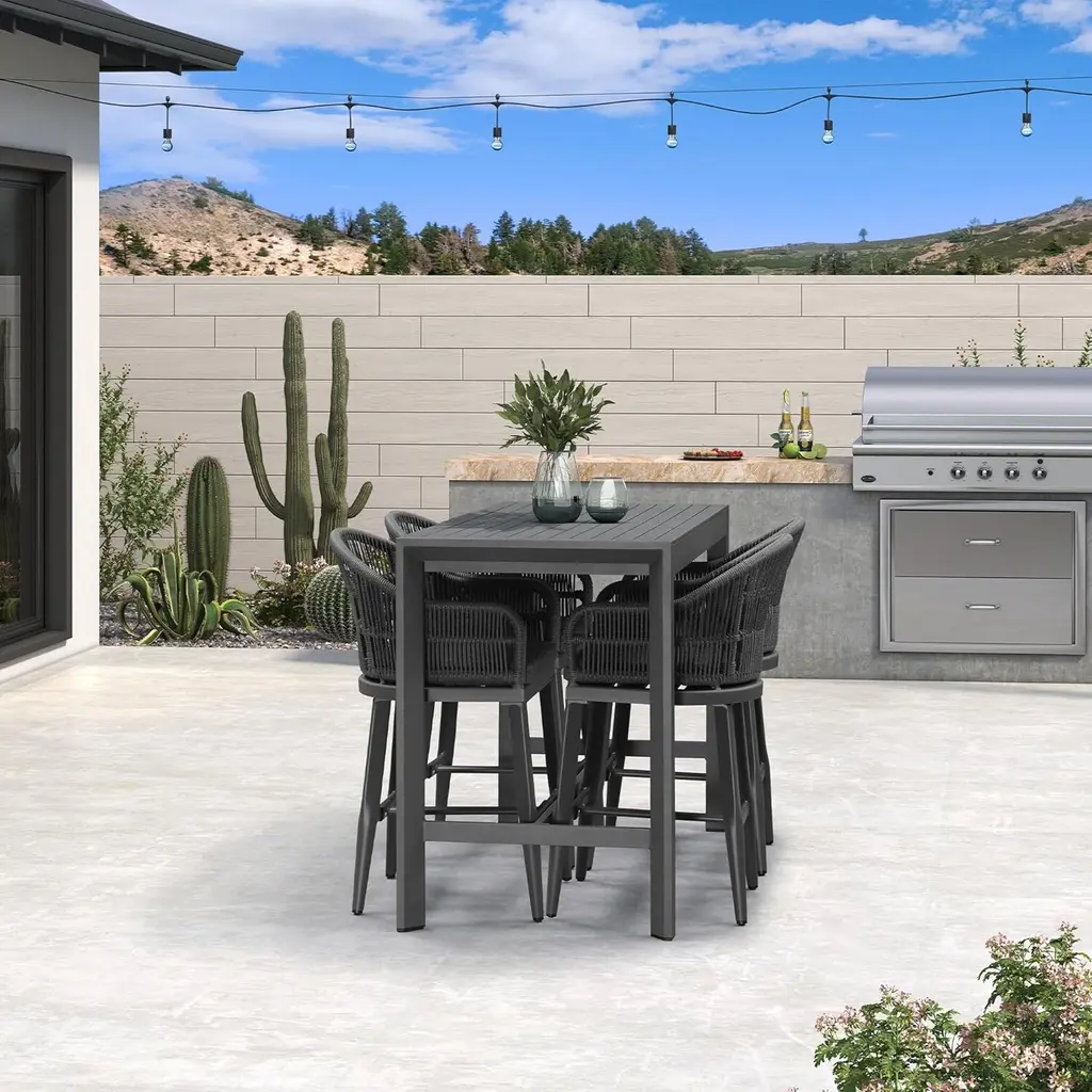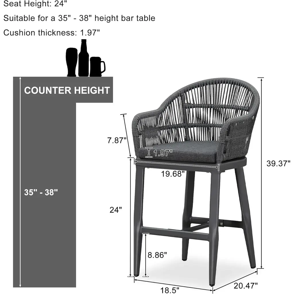 The bar stools is made of modern cross-weaving ropes design, simple and elegant, perfect for modern furniture decoration style, Aluminum frame is durable and not easy to rust, and the backrest is designed with low armchair, comfortable to sit, In addition, the island stool comes with a footrest to relieve pressure on the knee joints while sitting.allowing you to enjoy the leisure time. Features: