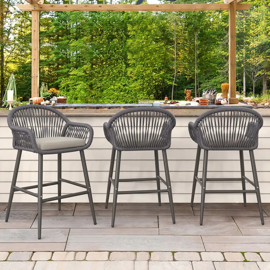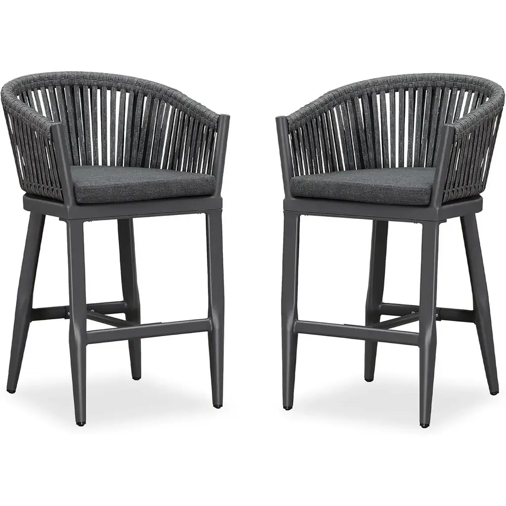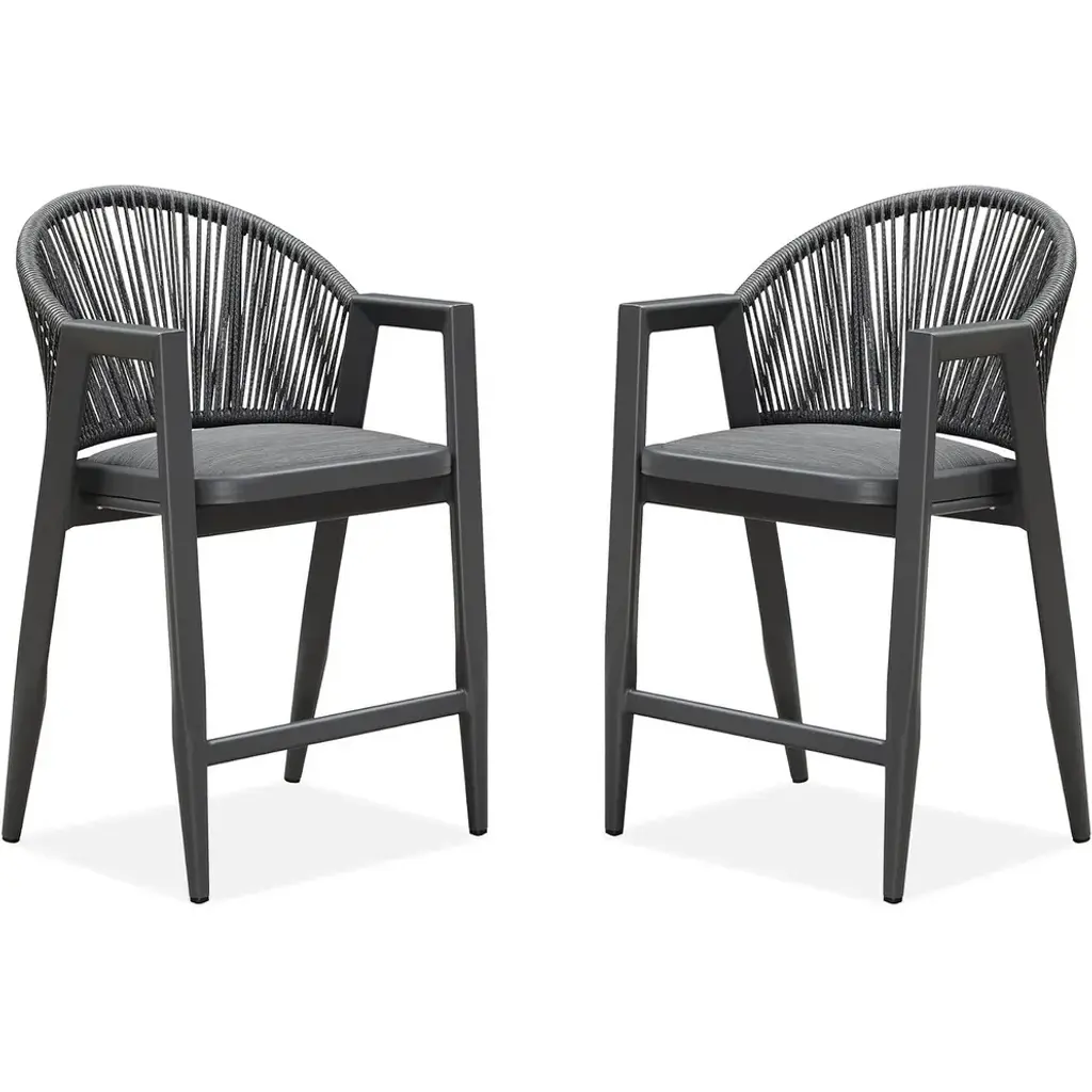 The bar stools is made of modern cross-weaving ropes design, simple and elegant, perfect for modern furniture decoration style, Aluminum frame is durable and not easy to rust, and the backrest is designed with low armchair, comfortable to sit, In addition, the island stool comes with a footrest to relieve pressure on the knee joints while sitting.allowing you to enjoy the leisure time. Features:
