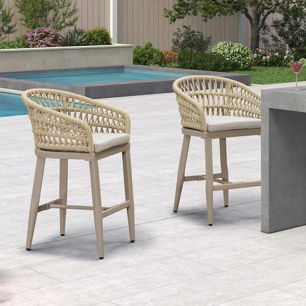 Purple Leaf Outdoor Dining Chairs Set Of 2 Patio Bar Stools - Cream-Counter Stool