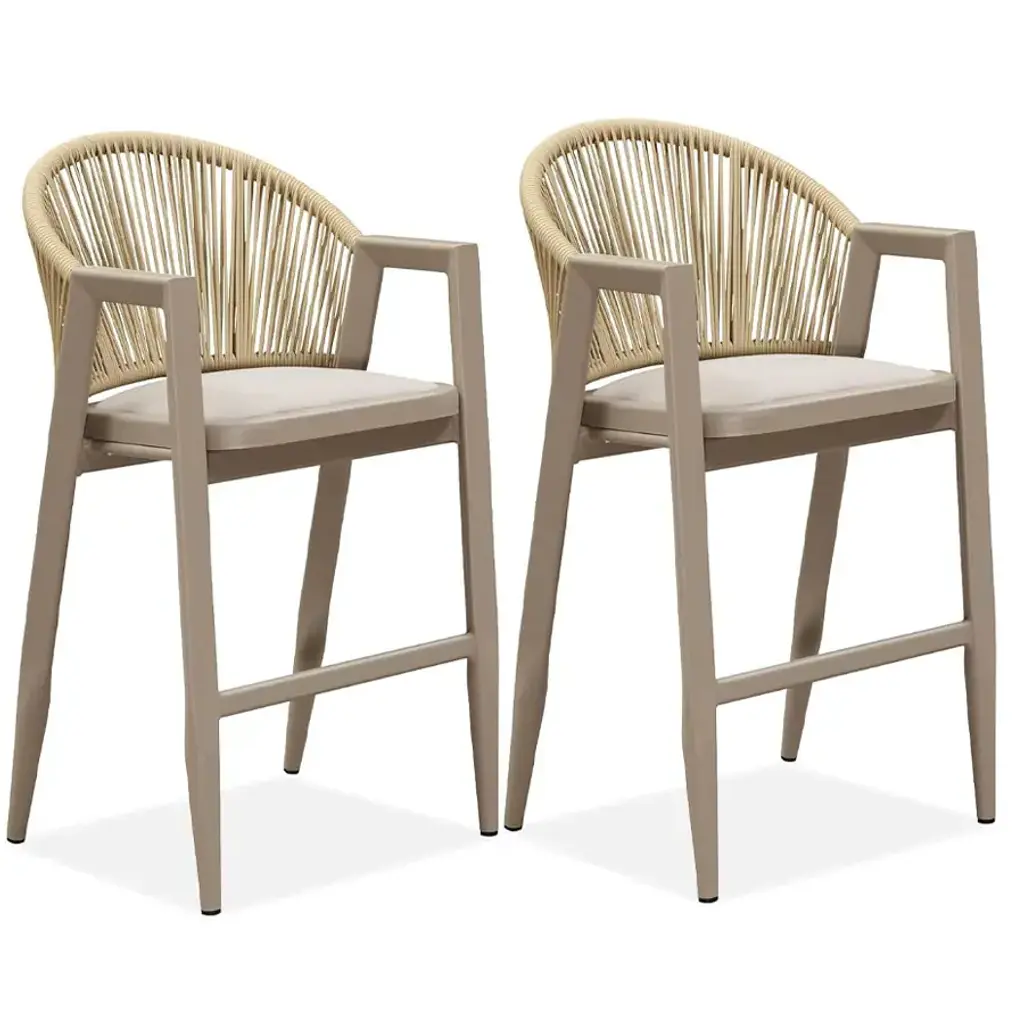 Purple Leaf Outdoor Dining Chairs Set Of 2 Patio Counter Height Bar Stool With Cushion - Cream-Counter Stool