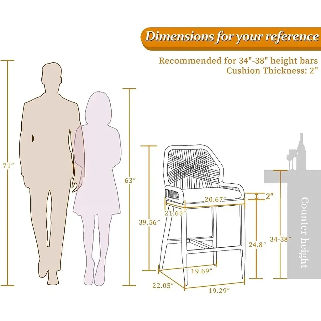 Since its launch in 2013, Purpleleaf has been committed to providing high-quality, uniquely designed outdoor living solutions for every family. We have seen countless families create their own backyard oasis. It is understandable that an ideal outdoor space is essential for family gathering and creating memories.What's Included? 2 set of Barstools Features: