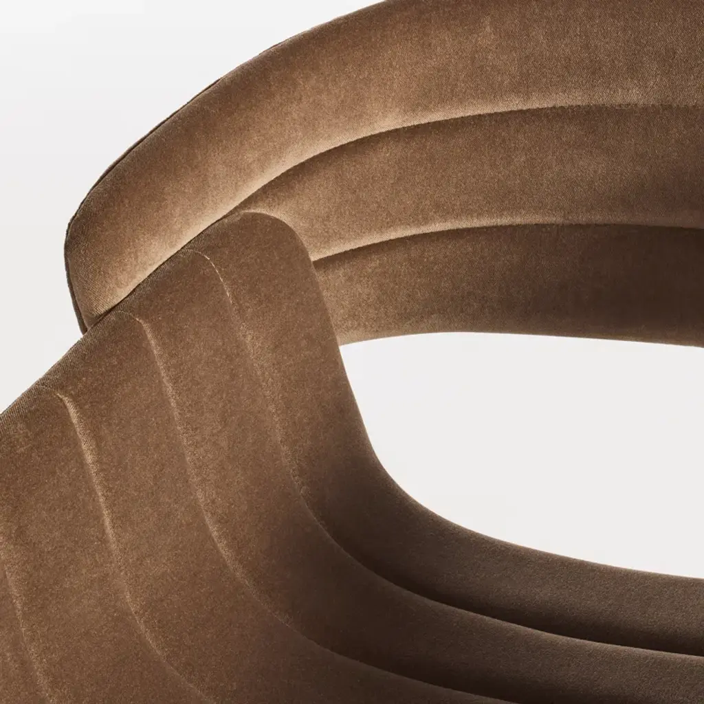 An upholstered seat and back work the curves and overlap just so as to create a chair that invites you to sit down and stay awhile. The channel stitch detail may not improve the aerodynamics, but it sure does look swell. With a color-coordinated powder-coated steel sled base.