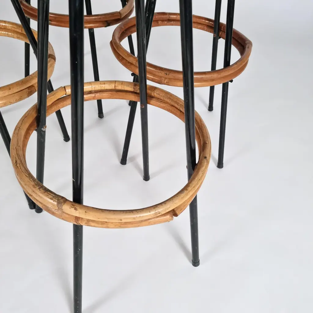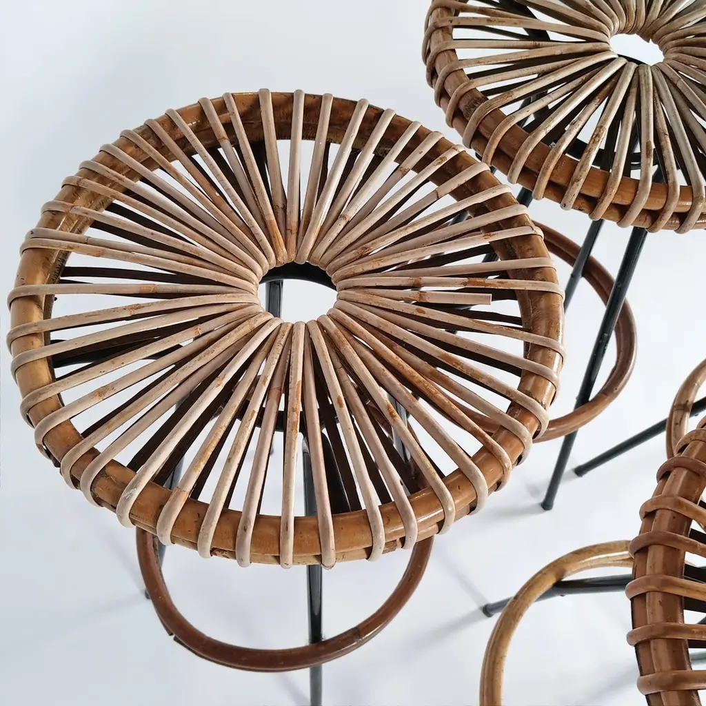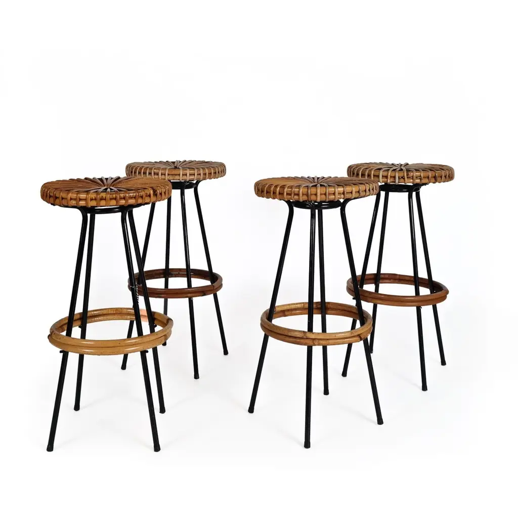This rattan barstool designed by Dirk van Sliedrecht for Rohé Noordwolde is an iconic example of the combination of craftsmanship and design. Rohé Noordwolde is a renowned Dutch furniture brand known for its use of rattan and its craftsmanship. The brand was founded in 1952 in Noordwolde, a town famous for its tradition of rattan furniture.Dirk van Sliedrecht, an important designer in Dutch design history, created some of his best works for the brand in the 1950s and 1960s. His style was both functional and aesthetically refined, with a focus on simplicity and natural materials. The rattan barstools he designed for Rohé Noordwolde are a perfect example of his vision: they combine natural materials with sleek, modern design.