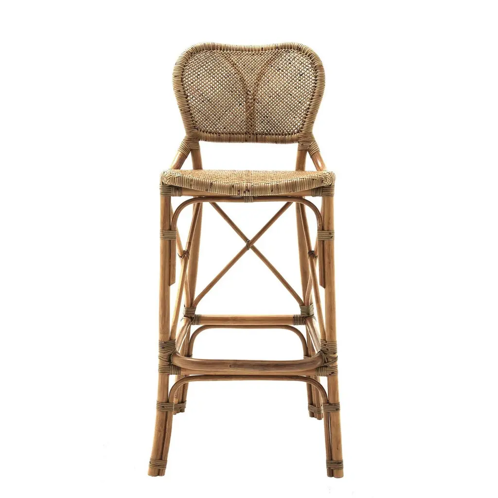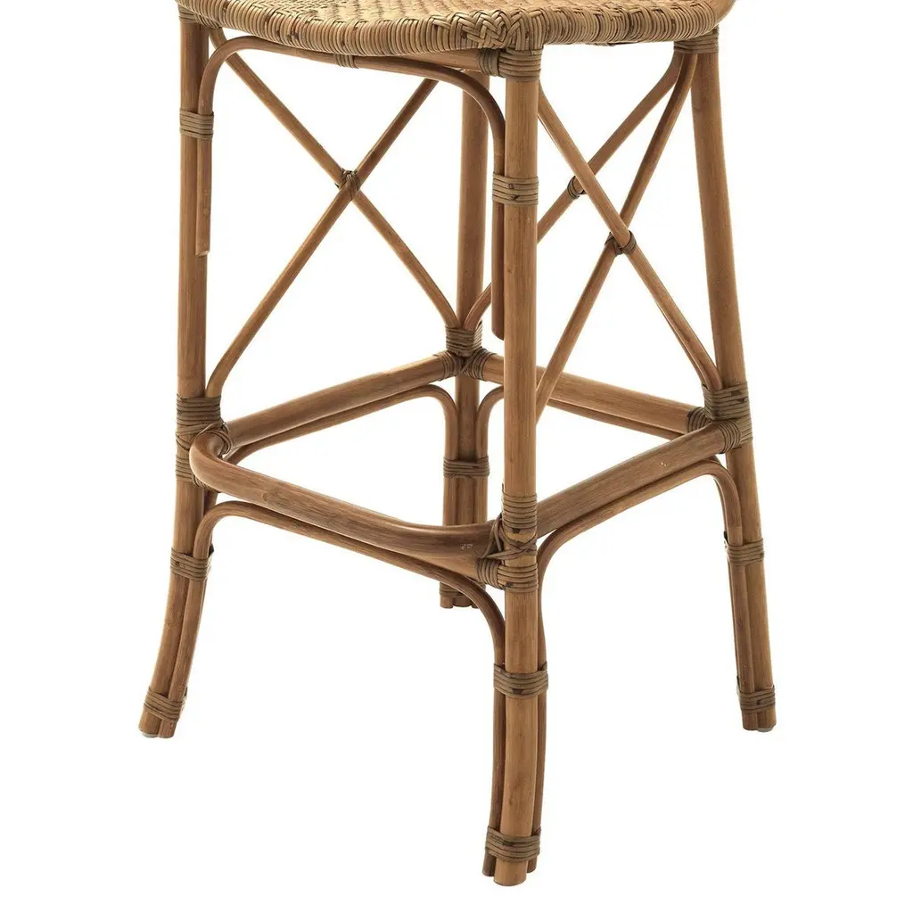 Bar stool rattan style all innatural rattan in clear finish.