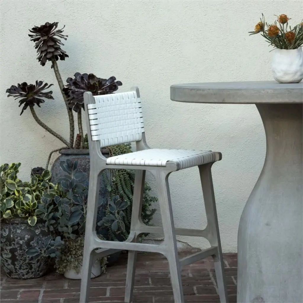 Rawley Indoor/outdoor Bar Stool 18"lx22"w X 42"h Flat White Faux Rattan Gray Teak
