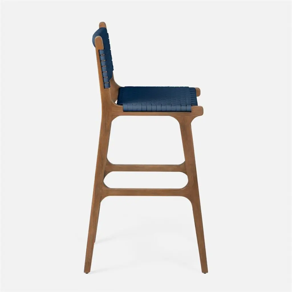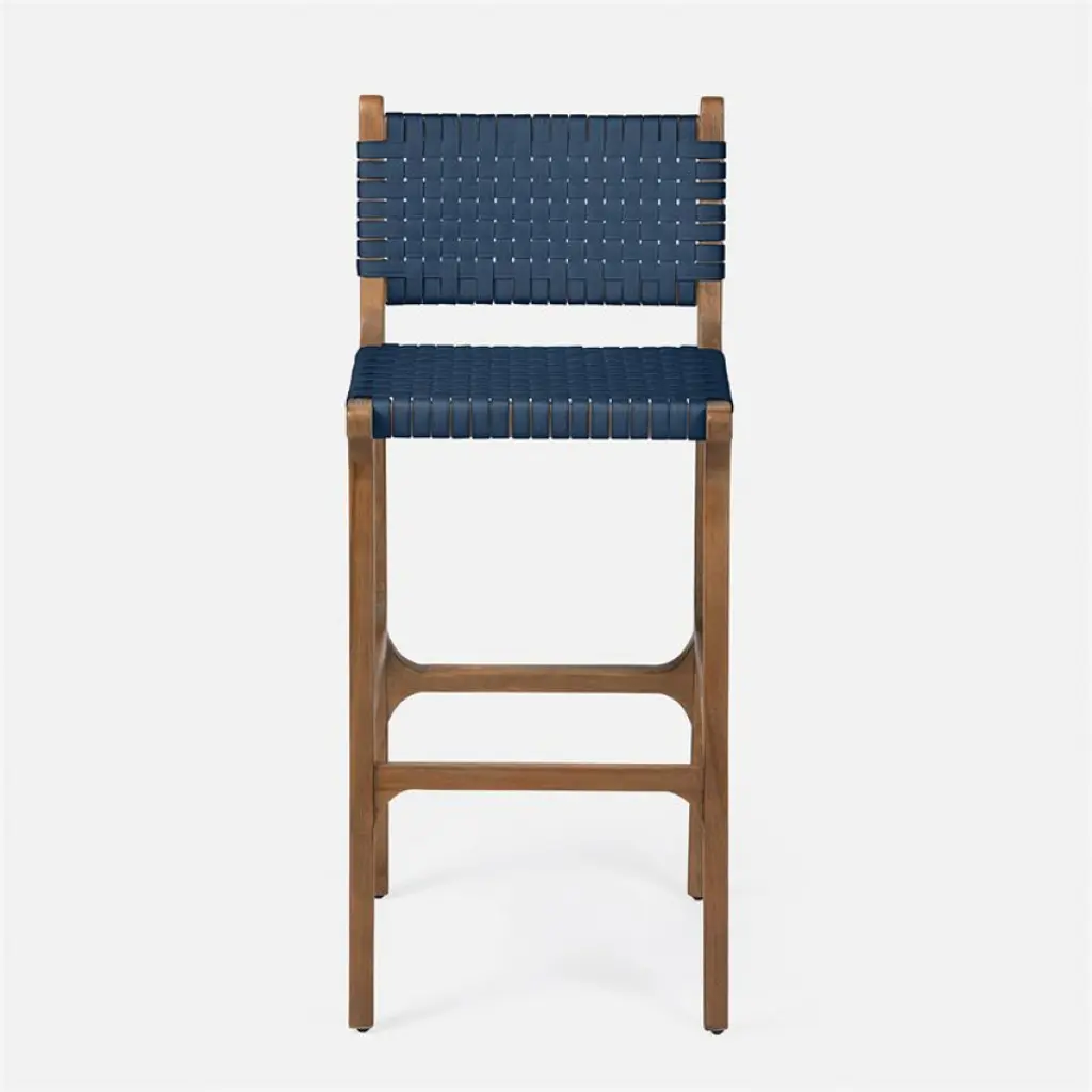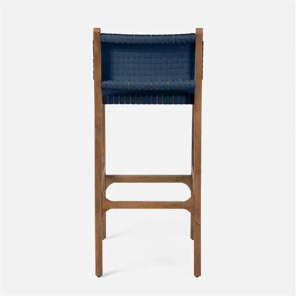 Rawley Indoor/outdoor Bar Stool 18"w X 22"d X 42"h Flat Navy Faux Rattan Aged Natural Teak