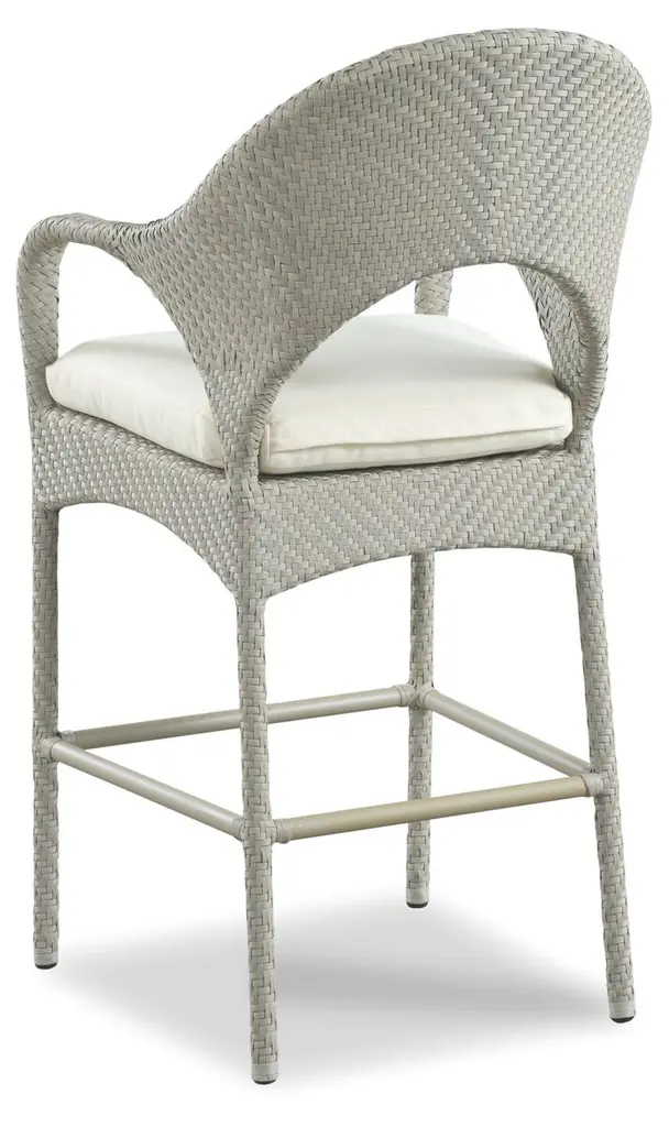 Complete your outdoor bar with this weatherproof stool, designed with a powder-coated aluminum frame topped with resin wicker and a padded, weatherproof seat upholstered in Sunbrella. Sunbrella is an easy-to-clean, solution-dyed acrylic fabric that is colorfast, mold-resistant, and soil-resistant.