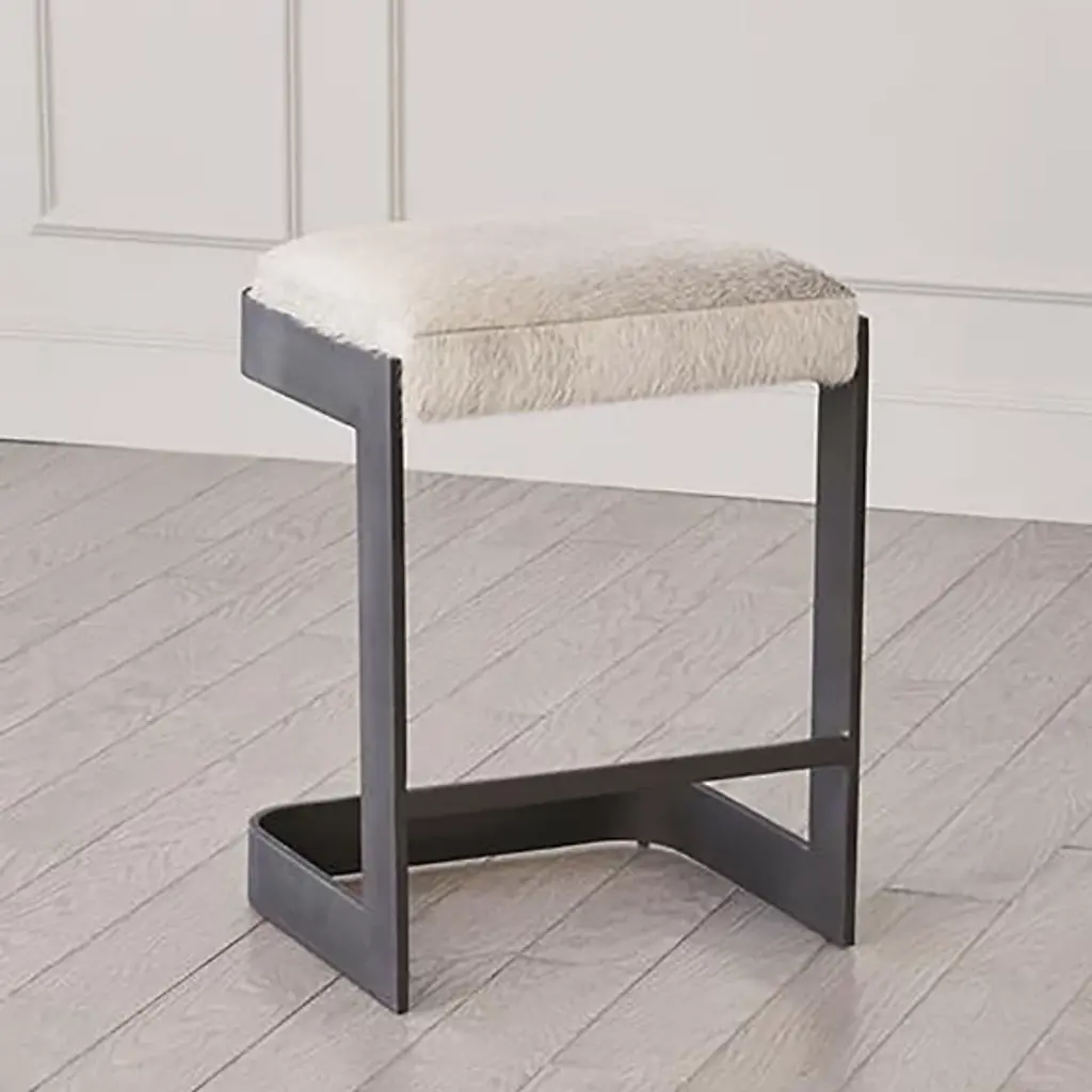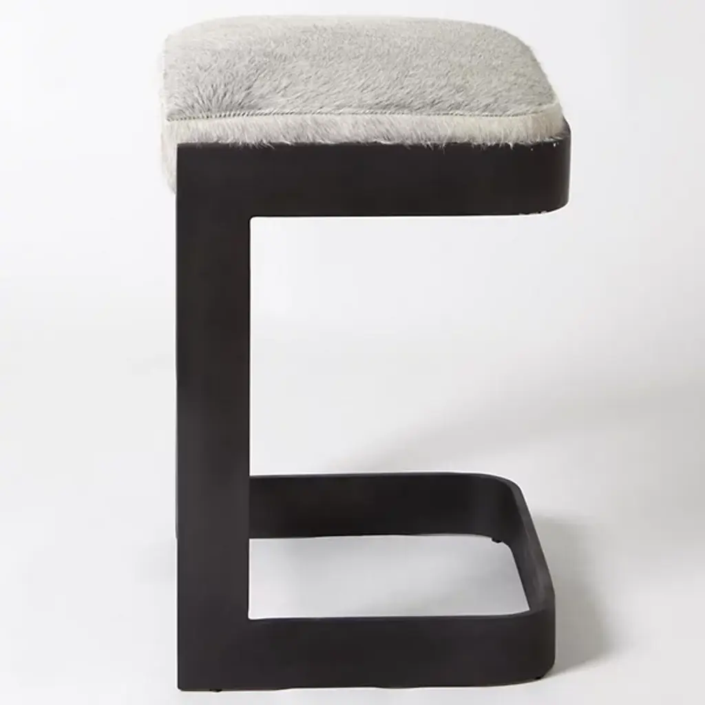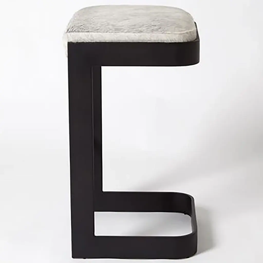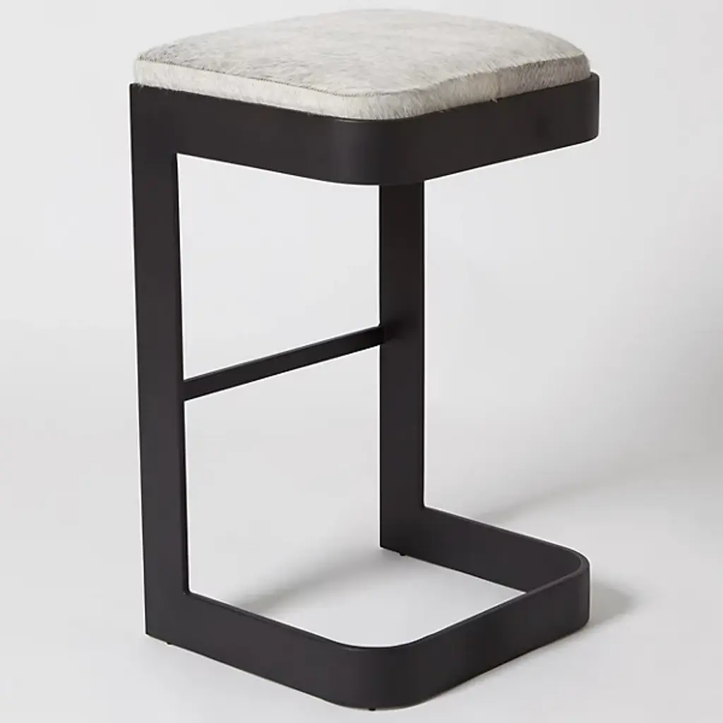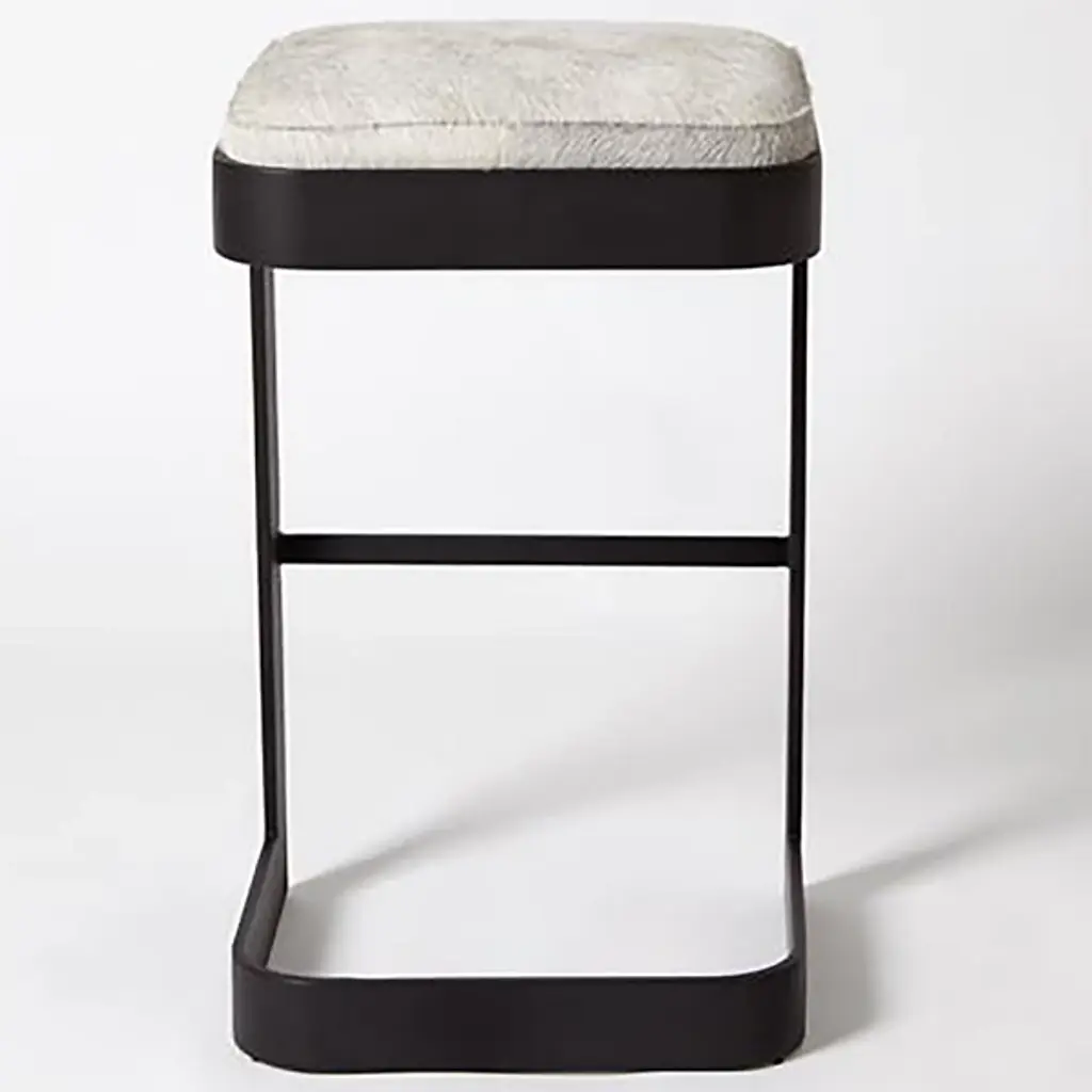 Chic, open, and sophisticated. Sit up with a gracious pose atop the leather upholstered Regan Bar Stool from Global Views. From the front, back, or side profile, this piece surprises in its classy, contemporary frame, made from a seamless band of solid steel. Perpendicular angles created by the base and its seat holder balance the piece out while showcasing a gravity-defying look. The sharpness of the frame elegantly juxtaposes with the plump seat cushion. The leather upholstered cushion provides great support and comfort for long meals and conversation.