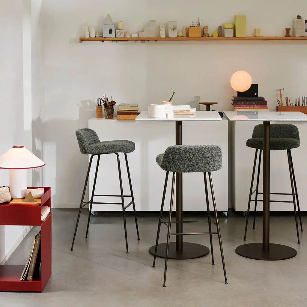 New to the Rely family, the bar and counter stool and chair (HW81 – HW100) has expanded the series with designs suited for an office workspace or hospitality venue. Compact and comfortable pieces created for optimal comfort, they feature a signature plastic shell crafted entirely from recycled waste. Upholstery is also available, while the legs come in black or bronzed.