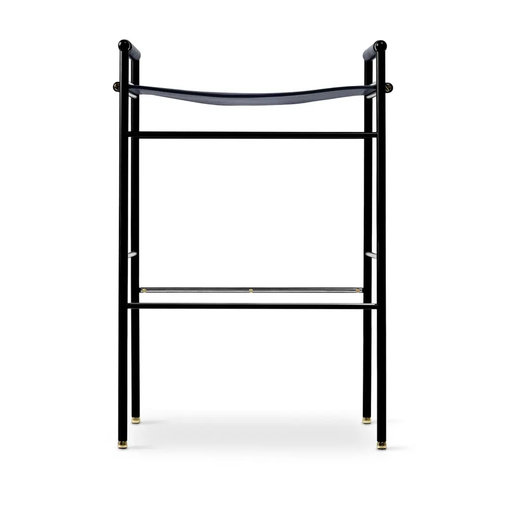 The “Repose” contemporary counter stool belongs to a collection that revisit the director chair collection, serene pieces where exclusivity and precision are shown in small details such as the hand-turned metal nuts and bolts that fix the leather surfaces, that go unnoticed at first sight.The robustness of the steel structure is combined with the delicacy of the rounded structure. The matte metal finishes evoke the passage of time and are complemented by vegetable tanned cowhide leathers that age gracefully with its use.The “Repose” collection is designed and conceived as a tribute to director’s chair or luxury safari foldable furniture. All pieces are done with cold steel rods, machined on a turning lathe, black powder coated and lacquered with a matt rubber effect. Our signature screws are made with brass turning lathed, polished, and lacquered, these are the pieces that fix the saddle leather to the metal frame.Leathers are Spanish hides vegetable tanned. We use premium saddles in five colors to adjust to your taste and interior needs. This traditional vegetable dyeing and tanning method is an organic technique that relies on natural tannings from bark or plant tissues. The use of oils and natural fats give the leather a distinctive flexibility and texture, allowing it to be molded, retain its shape and age graciously.All skins are carefully selected from food industry sub-products, with a minimum thickness of 3.5 mm / 0,02 in, using the part of the animal's shoulder, which allows for larger pieces and uniformity, even though signature wrinkle from the animal’s neck may be recognizable. The vegetable tanning is a traditional and artisan treatment, which is respectful to the environment. Even with careful selection natural marks as a result of the contact with other animals, the age, origin and characteristics of the skin, or even the season in which the tanning takes place cannot be avoided. We still believe that these factors only add authenticity and uniqueness to every piece. Our leather parts are made with double saddles, always showing the top side of the hides that presents the better quality.Customization options.With the aim of creating customized pieces, clients can select from the various leather colors to create pieces that complement their home décor. Leather colors available, black, navy, dark brown, cognac and natural tobacco, and steel color is black.Normally we use off white threats for stitches, but client can select another option, being possible to select any color to make a unique piece for the project it belongs. The finish on the edges of our leather components is sanded and hand painted. We have the option to select an alternative color if not tone on tone will be applied.Please consult in case you are interested on having a particular heat embossing stamp on the leather.Our high-end collections are made to full fill home spaces where to gather and enjoy great conversation with families and friends. Occasional one-of-a-kind furniture for exquisite homes, from cottages to exclusive resorts. Our product is understood as a sculptural piece of design, as an art object to be displayed at different house spaces as library, bar, living, foyer, bedroom, powder, meeting, grand or great room.The different finishes options make the furniture perfect combinations on diverse styles, from rustic mountain home, a small cottage, a ski lodge retreat, or industrial a minimalist look. The 'Repose' contemporary armchair is a part of our exclusive collection that reimagines the classic director chair with a serene and exquisite design. Every detail is carefully crafted, from the hand-turned metal nuts and bolts that secure the leather surfaces, to the robust yet delicate combination of steel and rounded structure. The matte metal finishes evoke a timeless appeal, complemented by vegetable-tanned cowhide leathers that age gracefully over time.Designed as a tribute to director's chairs and luxury safari foldable furniture, the 'Repose' armchair is meticulously constructed using cold steel rods, machined on a turning lathe, and finished with a black powder coating and a matt rubber effect. Our signature brass screws not only add elegance but also securely fix the saddle leather to the metal frame.We use premium Spanish hides that undergo vegetable tanning, a traditional and environmentally-friendly technique relying on natural tannings from bark or plant tissues. The use of oils and natural fats gives the leather a distinctive flexibility, texture, and longevity, allowing it to mold, retain its shape, and age gracefully. Each skin is carefully selected from food industry sub-products, ensuring a minimum thickness of 3.5 mm / 0.02 in. While some natural marks and wrinkles from the animal's neck may be noticeable, we believe they enhance the authenticity and uniqueness of every piece.Our leather parts are made with double saddles, always showcasing the top side of the hides for superior quality. We offer customization options to suit individual preferences and home décor, with a range of leather colors including black, navy, dark brown, cognac, and natural tobacco. The steel color is black, seamlessly blending with various interior styles.For stitching, we typically use off-white threads, but clients have the flexibility to select alternative colors, making each piece truly unique. The edges of our leather components are meticulously sanded and hand-painted, providing a refined finish. Additionally, we offer the option to choose an alternative color for a striking contrast if a tone-on-tone effect is not preferred.If you desire a personal touch, we offer the possibility of incorporating a particular heat embossing stamp on the leather. Our high-end collections are designed to create a gathering space for families and friends, offering one-of-a-kind furniture for exquisite homes, ranging from cottages to exclusive resorts. Each piece is a sculptural work of art, perfect for 