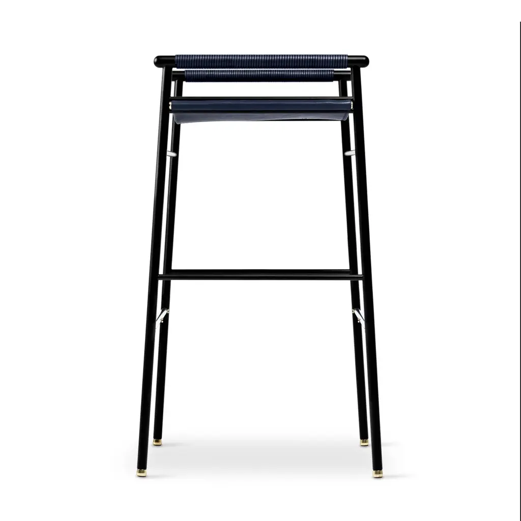 "Repose" Contemporary Barstool Navy Blue Saddle Black Rubbered Frame