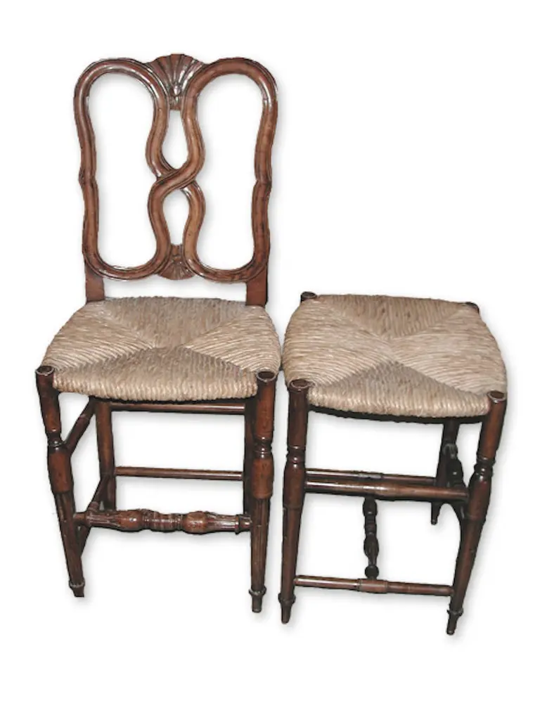 Reproduction Louis Xvi Rush Seat Bar Stool With Back Support