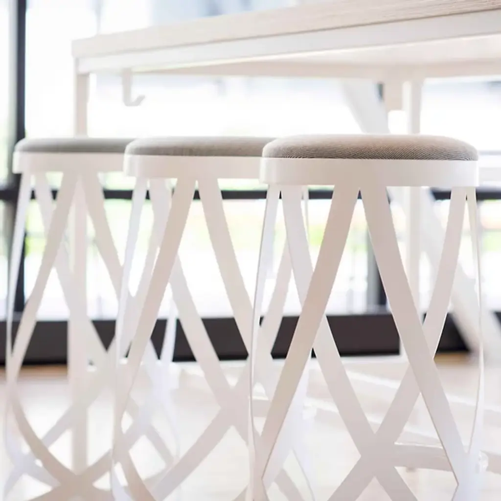 Sit in style atop the Ribbon Bar Stool from Cappellini, a visually light and physically robust creation that rises in a cylinder shape from an open base to a disc-shaped top. Designed by Nendo, a professional collective of designers headed by architect Oki Sato, its name means “Clay,” and the stool is no exception to their naturalistic designs, winning several design awards. Each stool is fashioned from a single continuous ribbon of laser-cut steel, curling over and around itself to create open patterns while ensuring steady balance.