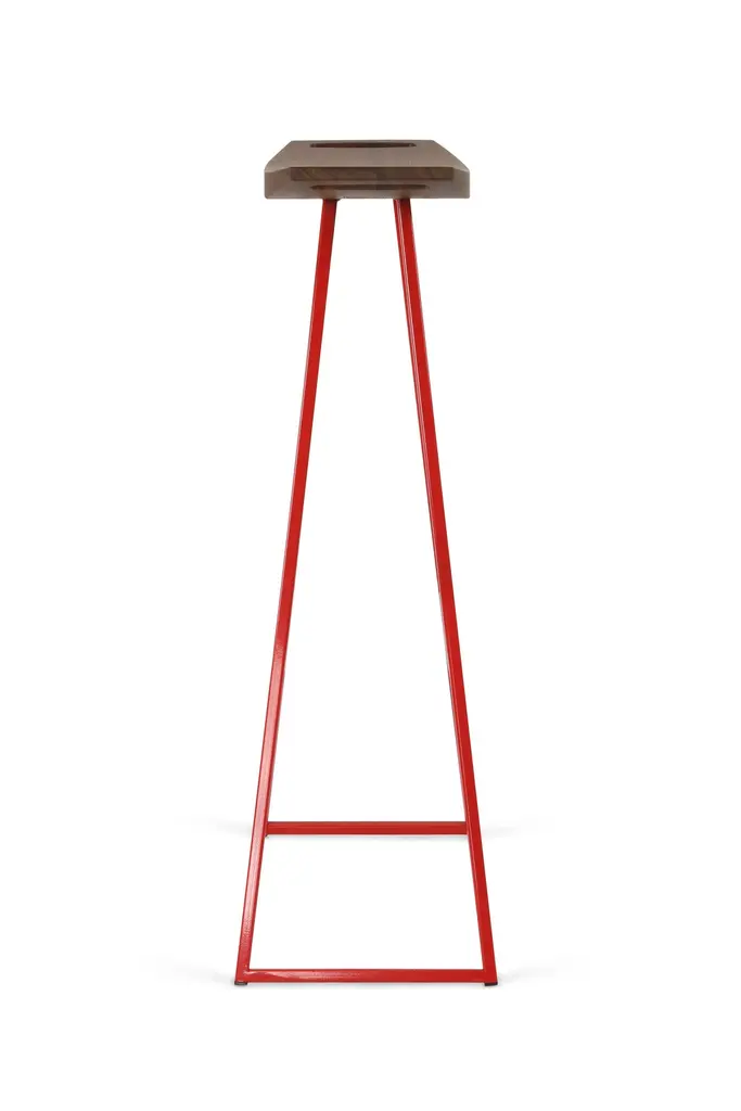This sleek stool has a thin carved wooden seat that rests on a steel tubing base. The elegant seat is curved for seamless comfort while displaying a stunning intersecting diagonal accent inlay. This eye-catching and durable piece will make any kitchen counter, bar or table stand out. The color options for the powder-coated base are red, green, orange, or yellow. Or if you’re not quite that daring we also offer white and black. The seat comes in either walnut with maple inlayed, maple with a walnut inlay, solid walnut or solid maple. The Roberts is available in table, counter and bar height. Measure: 30"H.