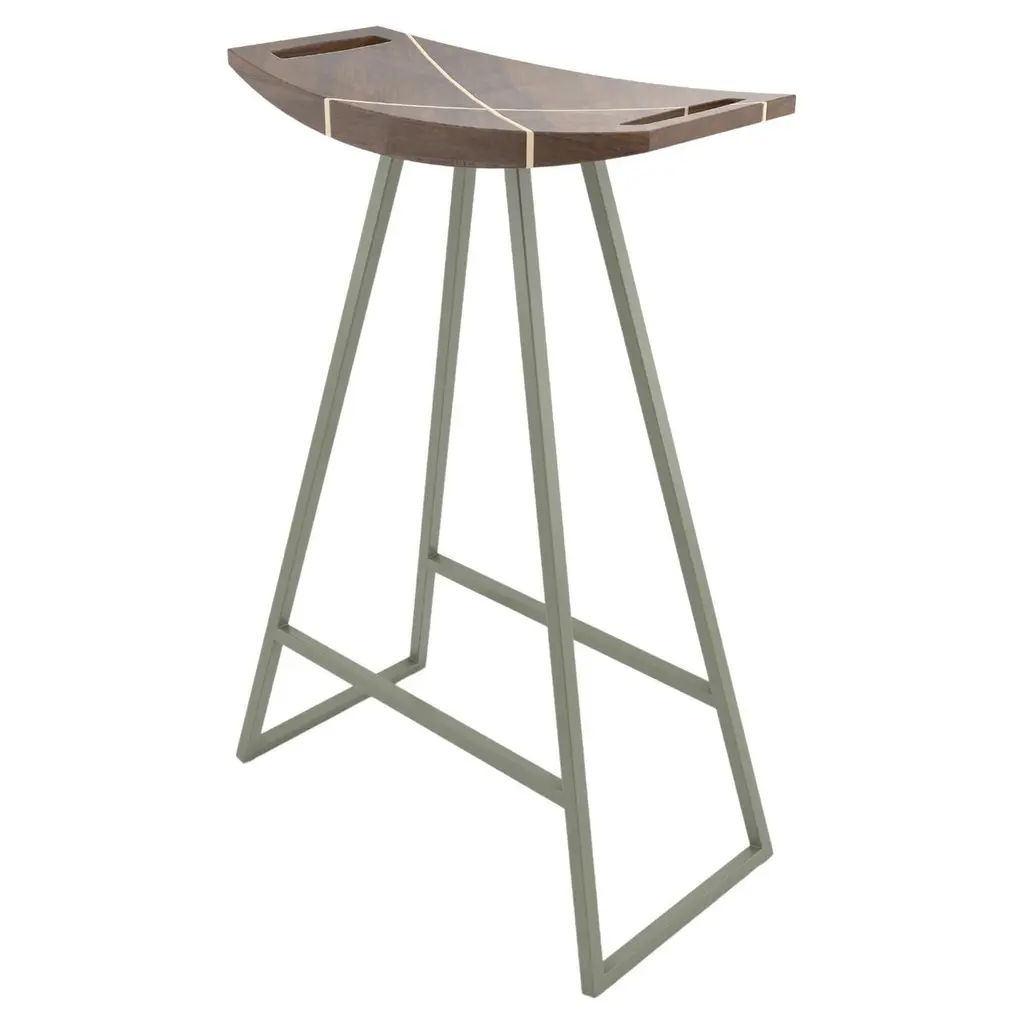 Roberts Bar Stool With Wood Inlay Walnut Gray