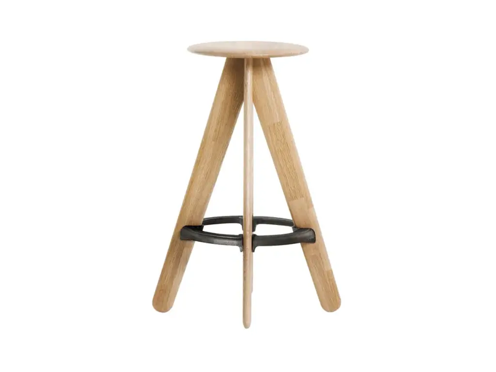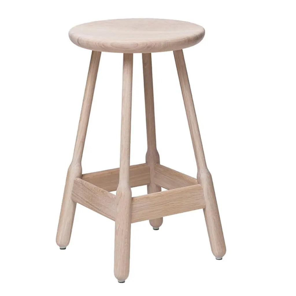 Rocket Bar Stool has a strong, playful character. Crafted in solid oak and originally created for Finnish designer Eero Aarnio's home kitchen, the bar stool has proved very popular since its introduction by Artek. Aarnio has created many notable pieces over a career that spans five decades. While Aarnio is not primarily known for his wood products, Rocket is a testament to his mastery of the medium. A smaller version, Baby Rocket Stool, is also available.