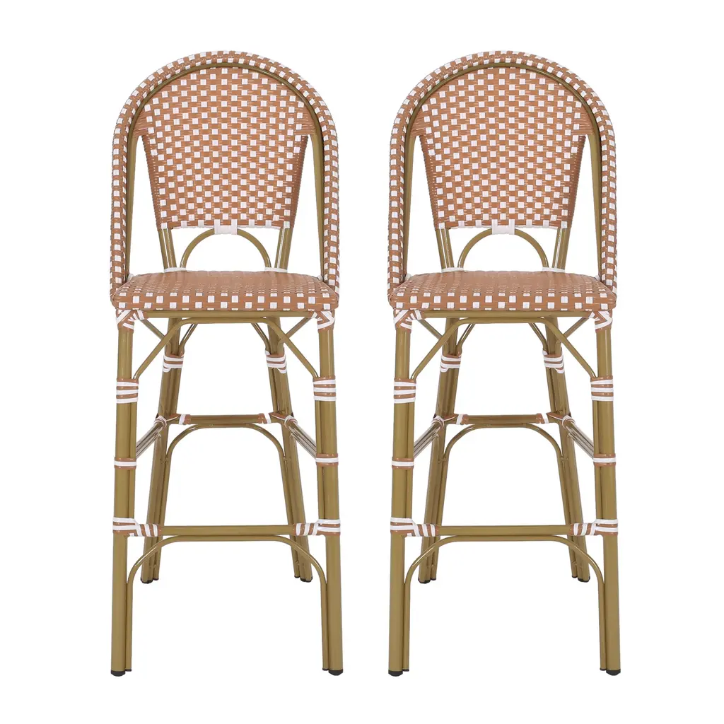 Roomfitters 29.5" Outdoor Pe Rattan French Barstools, Set Of 2, Aluminum Frame With Bamboo Finish, Dark Teal And White Woven - Rust Red,white