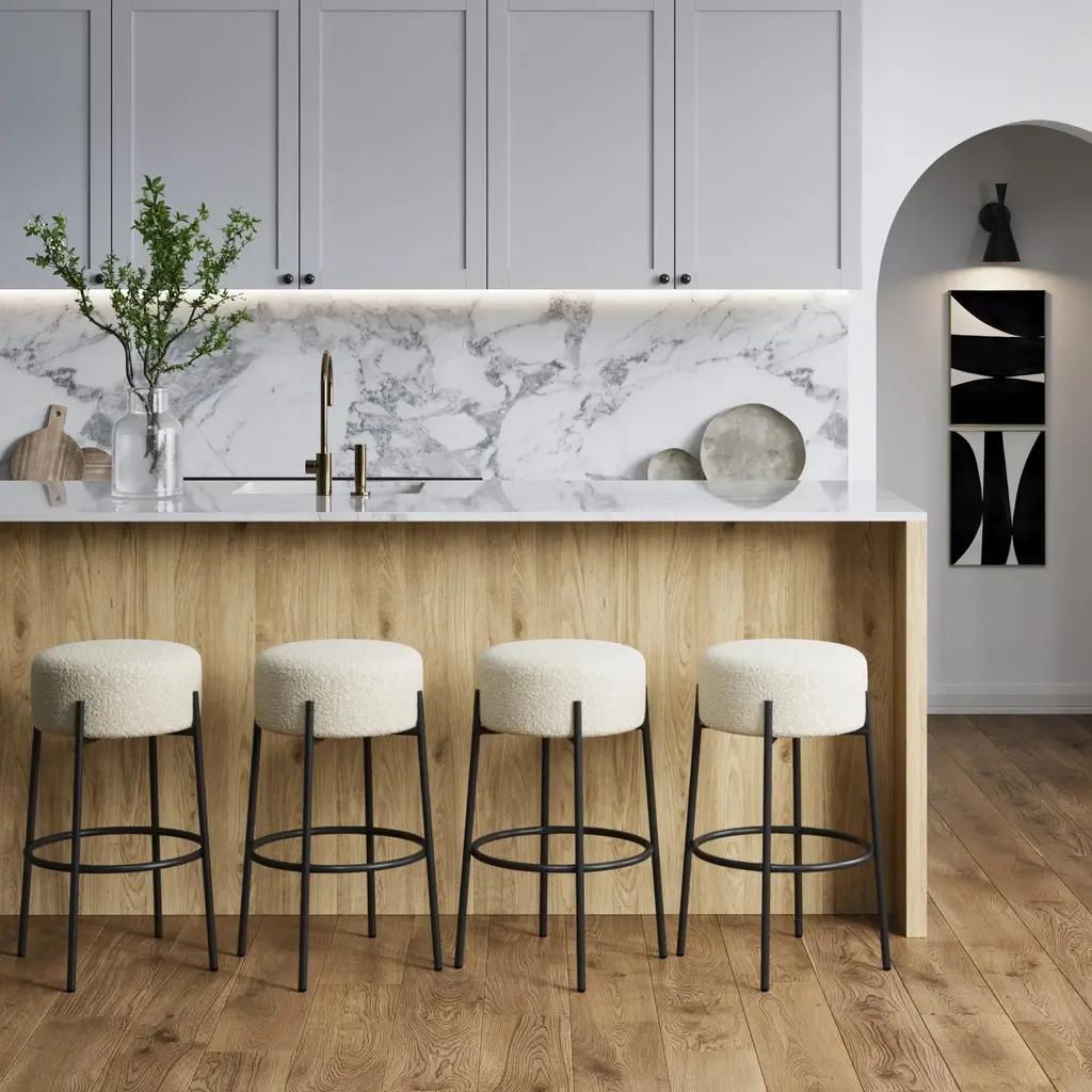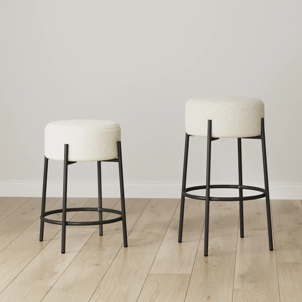 Looking for the perfect white bar stool? Meet Isaac, the bar height backless bar stool you’ll never want to get up from. With a soft padded seat covered in our gorgeous white boucle fabric, Isaac is the perfect combination of form and function. This metal bar stool has a built in footrest that keeps your legs comfortable as you sip on that end-of-day rosé. Its 29” height means it will fit perfectly at your bar or as your kitchen island stools. And with a 15 minute assembly, your kitchen will gorgeous in no time, with almost no effort! We love that for you.