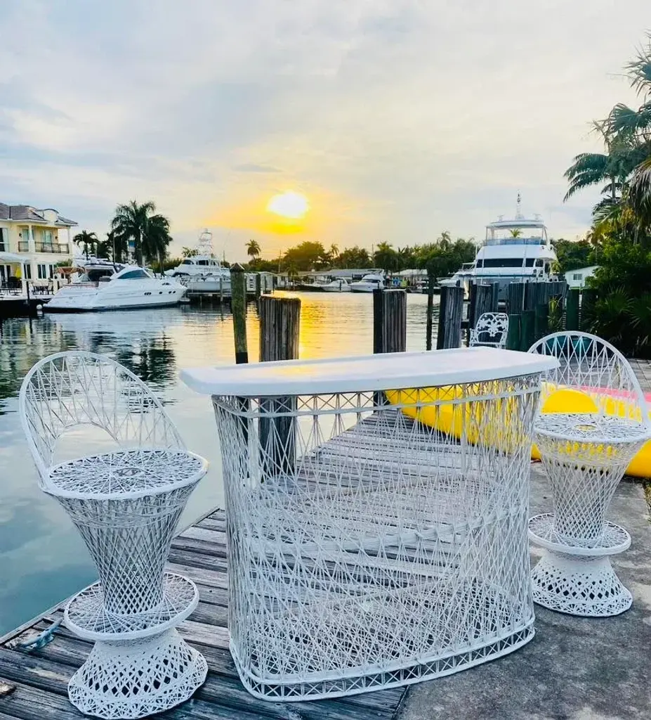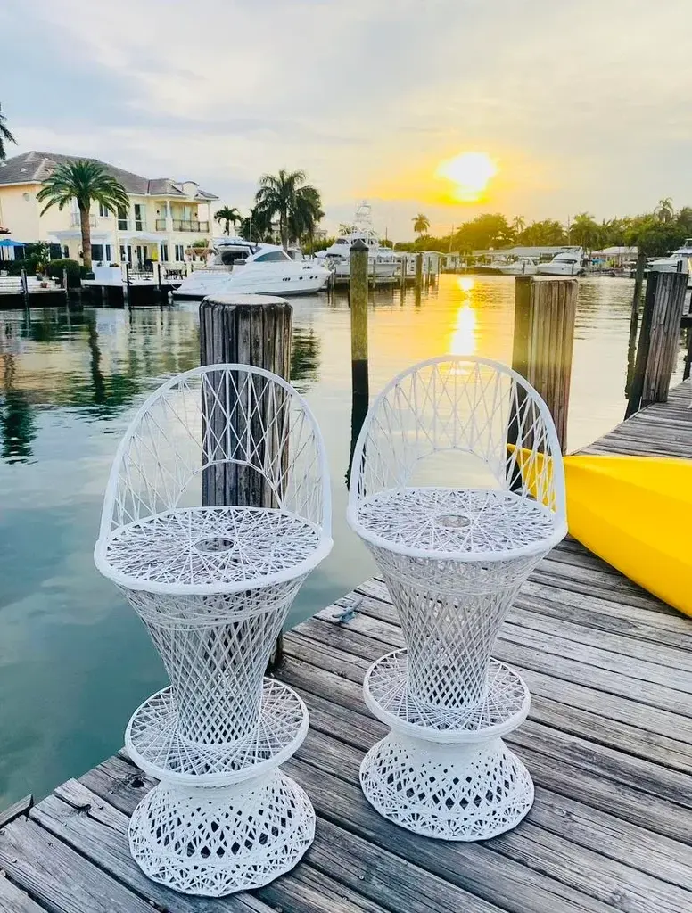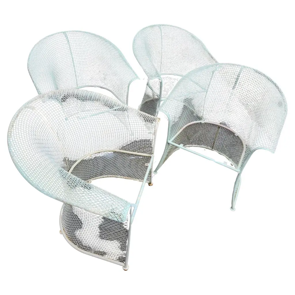 Set of 2 Russell Woodard spun fiberglass outdoor bar stools. Freshly lacquered White. If needed we have a other set available