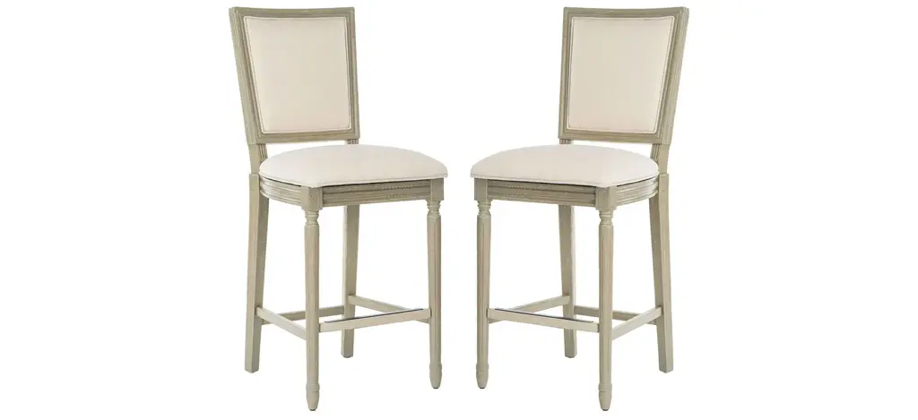 These classically designed barstools bring a touch of French elegance to your space with exposed framework, a clean white finish, and amply padded seats wrapped in contrasting linen upholstery.