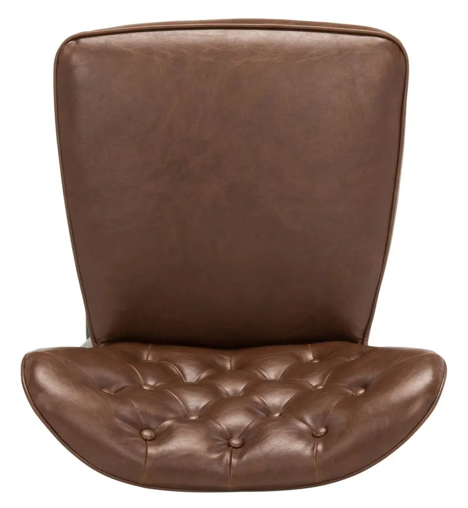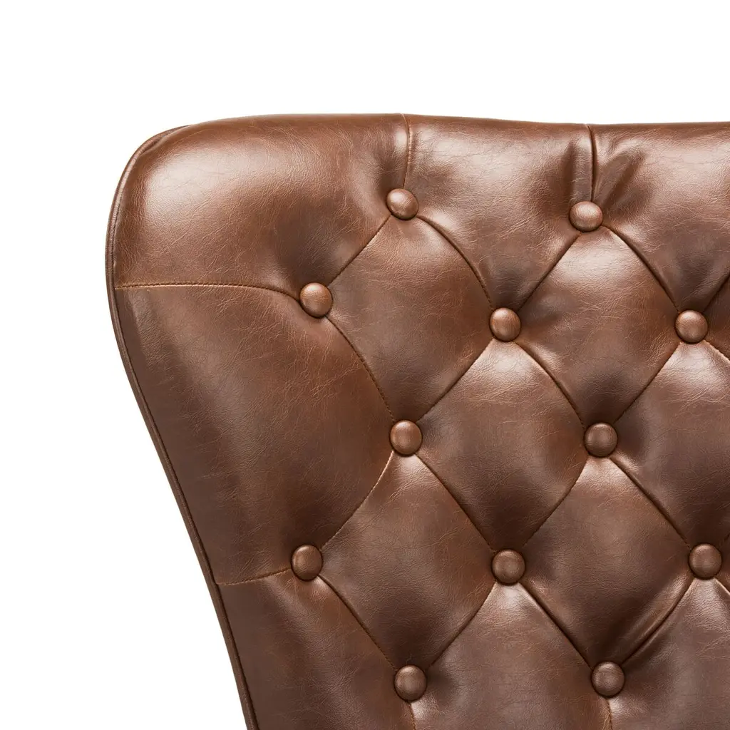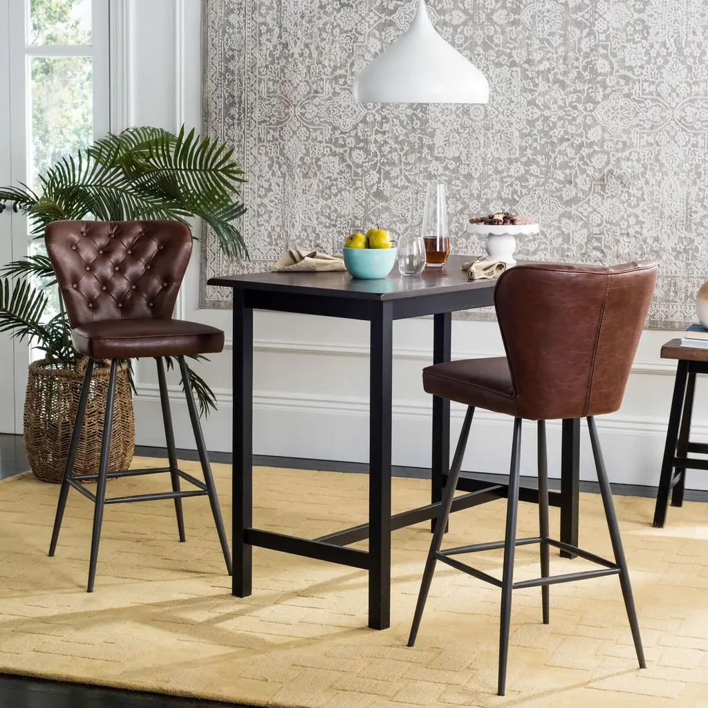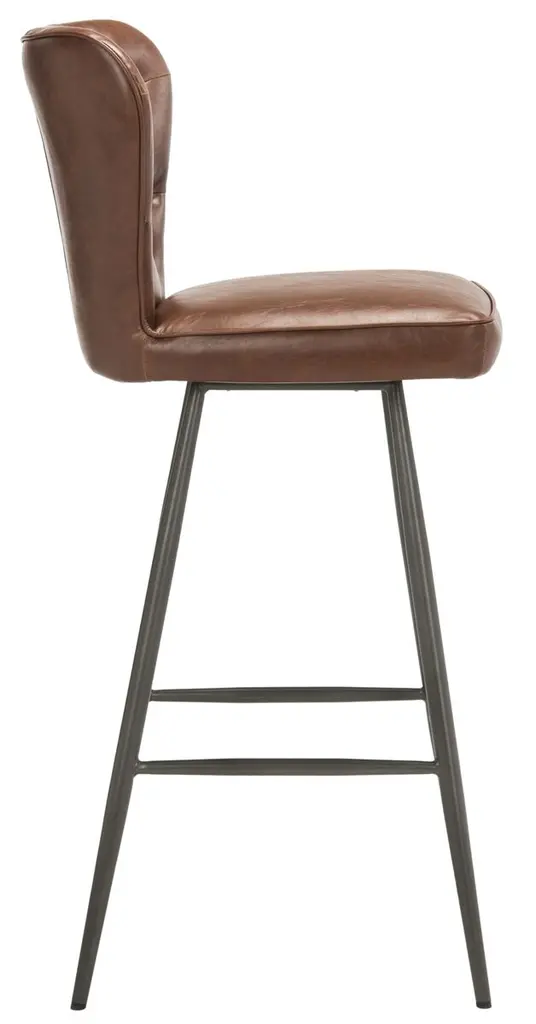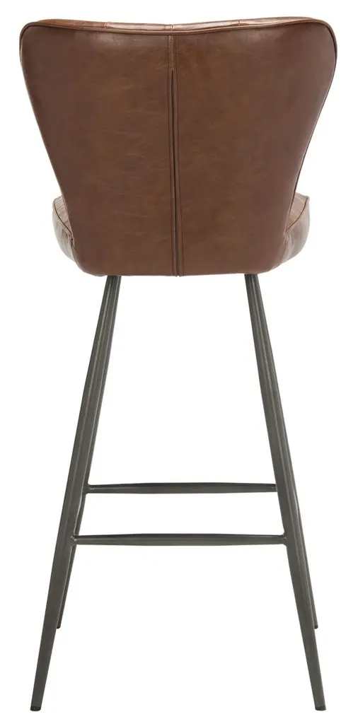 This upscale mid century bar stool instantly updates any contemporary dining area with vintage curves and sleek metal legs. Designed for the modern jet setter, its leather style upholstery with tufted detail brings character and warmth to the table.