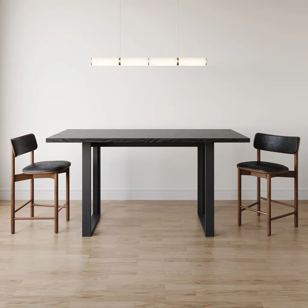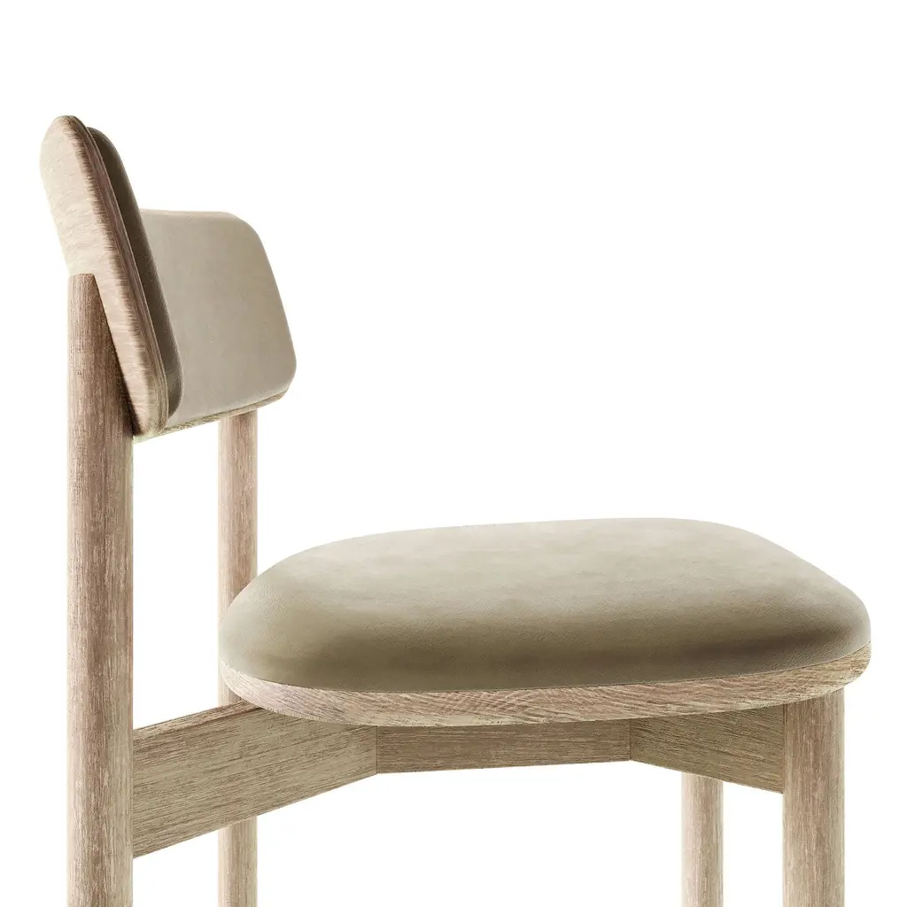 In collaboration with HD Magazine’s Hospitality Design Awards. It's named after Student Product Design Winner: Pratt Institute design student Laurie Sadove. Available in your choice of sleek finish that elevates any space. Its durable solid wood frame and vegan leather seat. It's Contract Grade, so you know it's built to last.